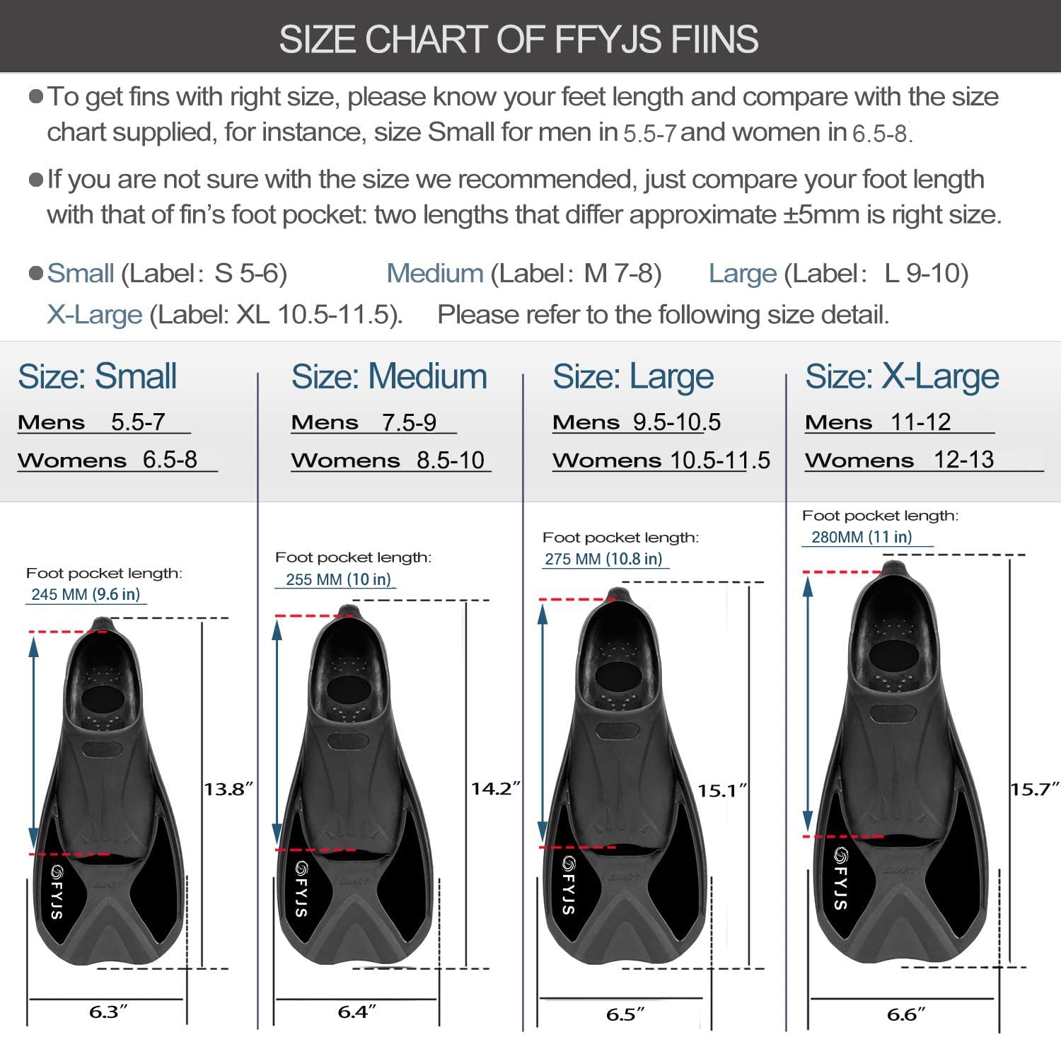 FYJS Short Swim Fins with Comfortable Full Foot Pocket Travel-Size for Snorkeling and Scuba Diving