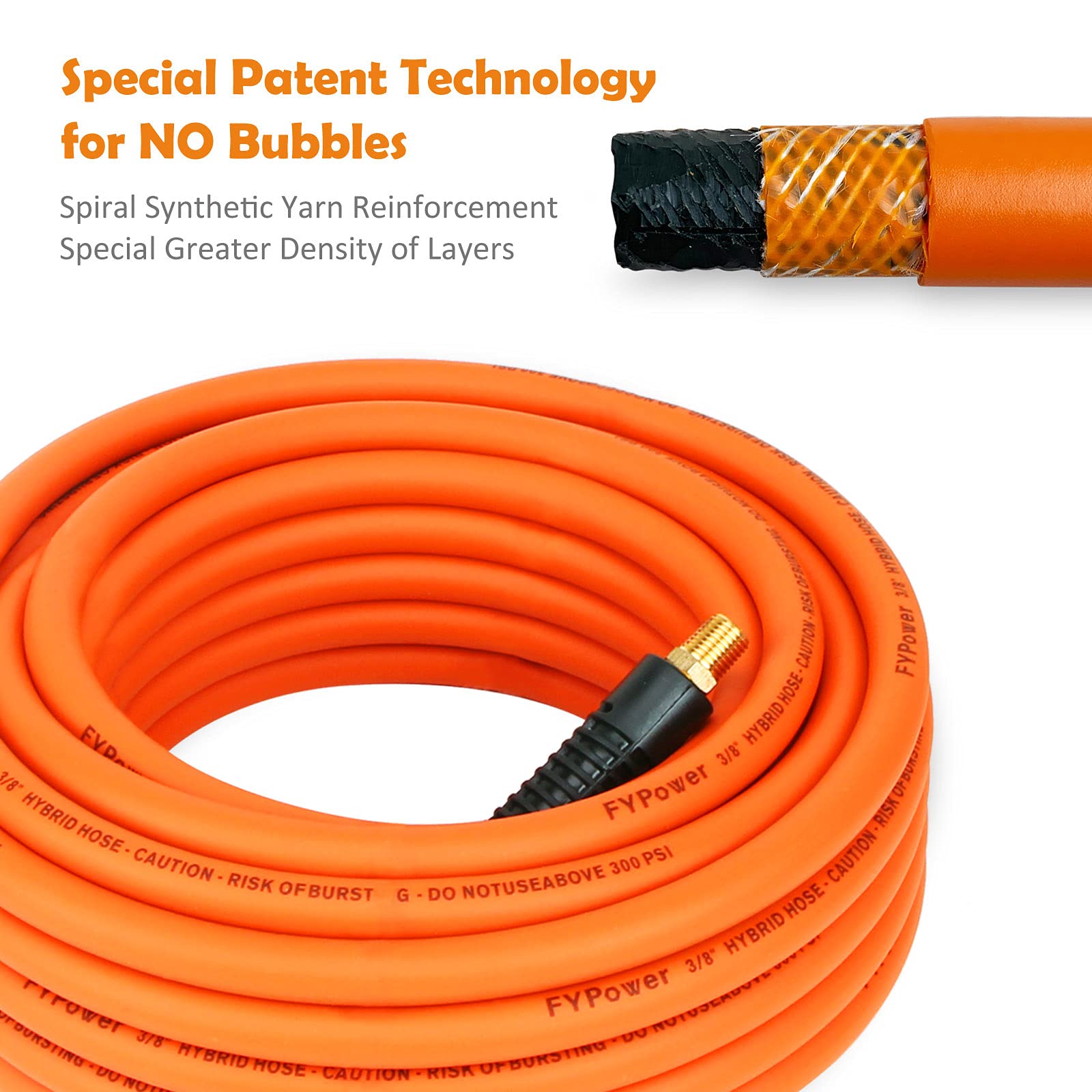 • ➤ Flexible, Lightweight Hybrid Air Hose – Offering more control and versatility over a standard air compressor hose, our 3/8” x 50ft hybrid hose with ¼” FNPT and MNPT couplers offers 300 PSI of stable pressure.