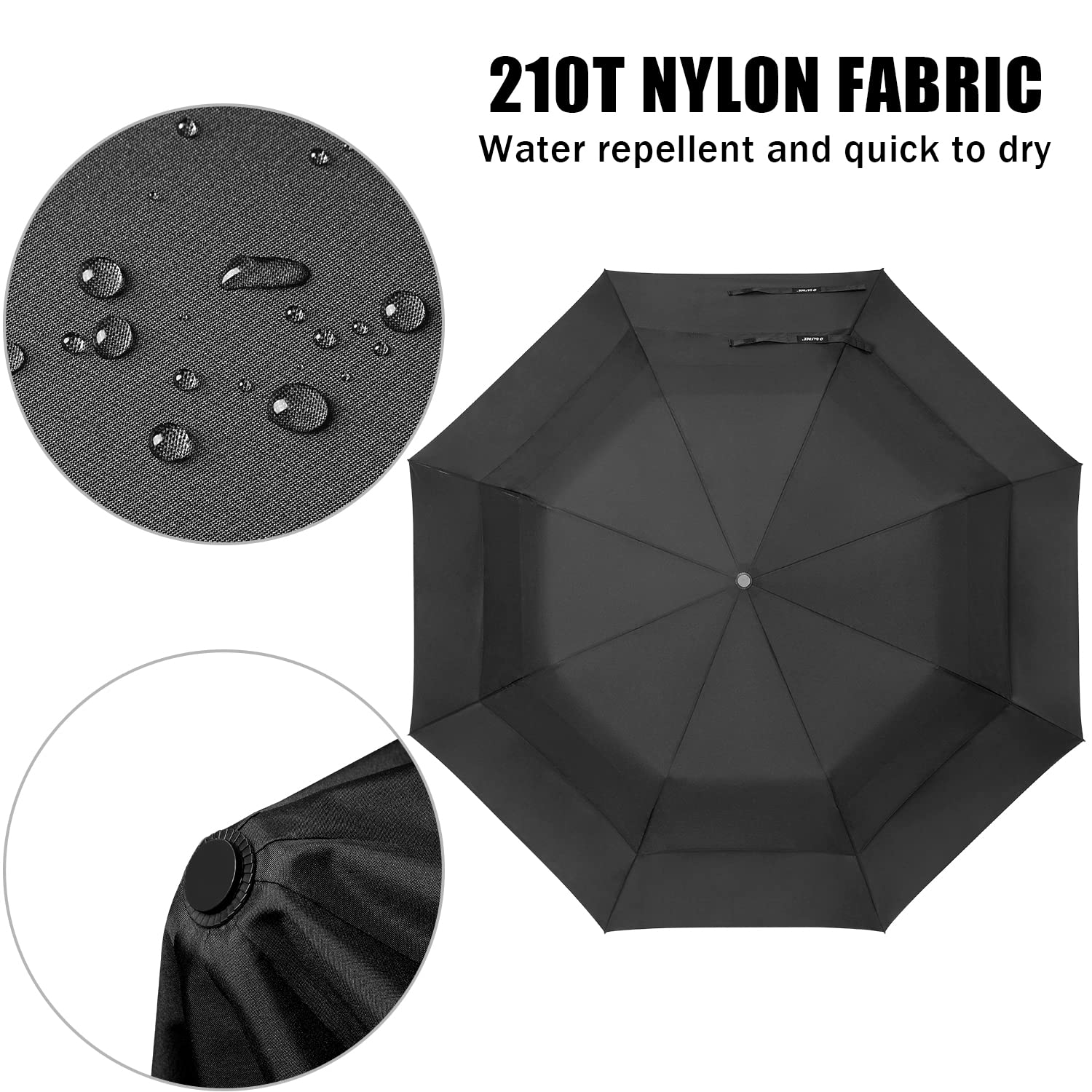 • Auto-Open Umbrella: Open this compact umbrella at the press of one button with one hand in a second. Offers instant cover from rain with a fast Opening Action. Please noted that this golf umbrella is collapsible and is closed by a manual lock.