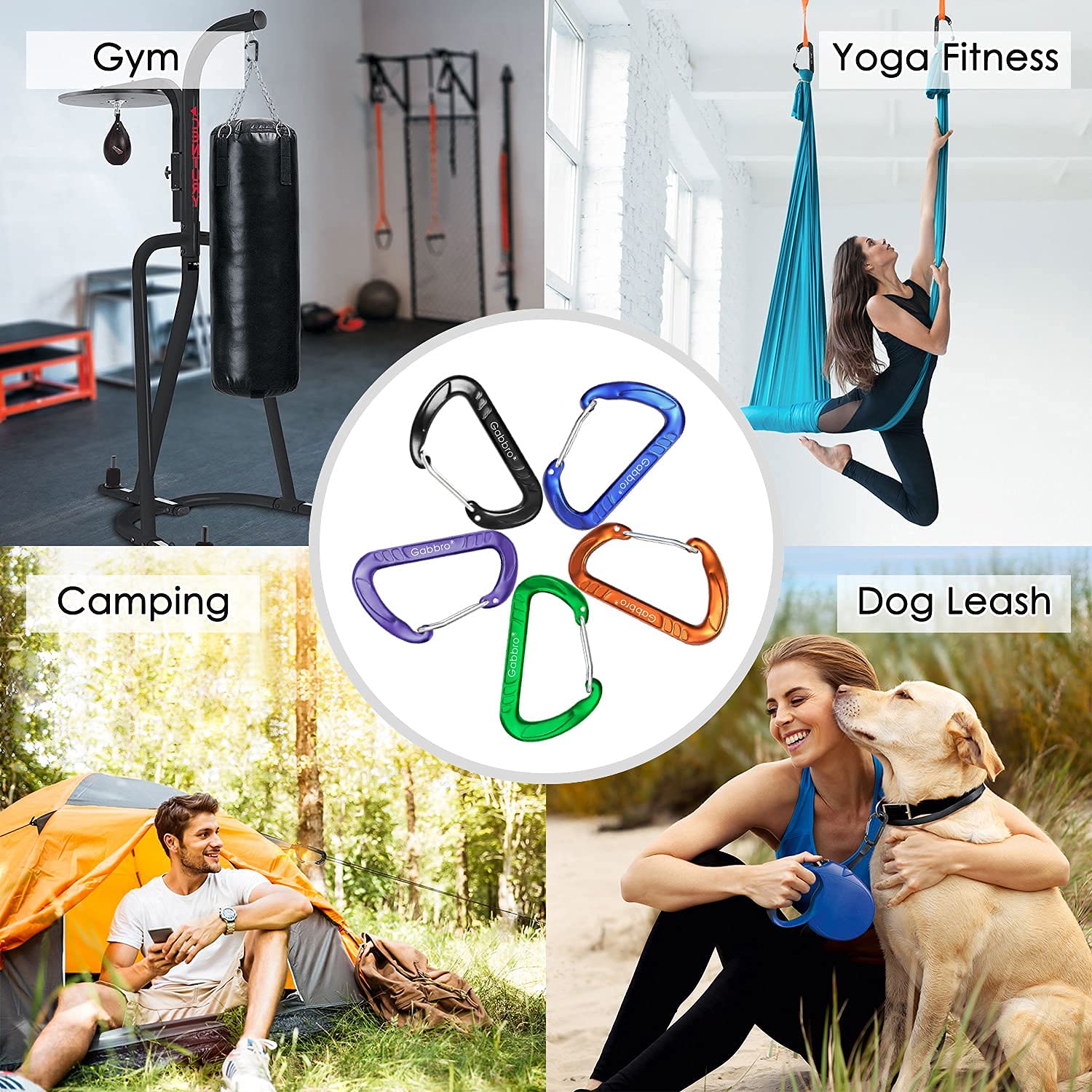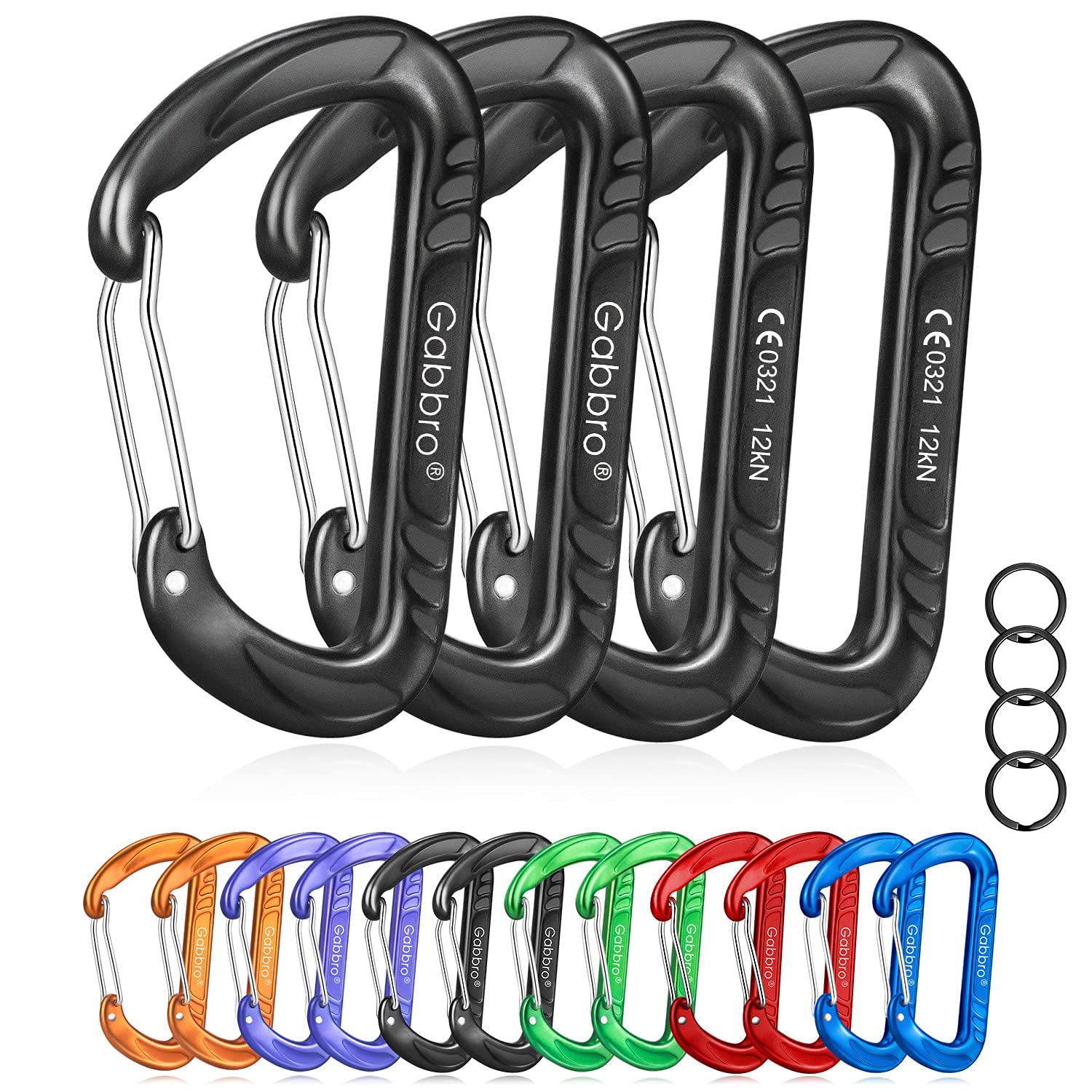 Gabbro Carabiner Clips Heavy Duty 12kN (2697 lbs), | 3.2 Inch, Aluminum, Wiregate Snap, Lightweight, 4 Pack | for Hammock, Hiking, Camping, Water Bottle, Dog Leash Harness, Keychains Black