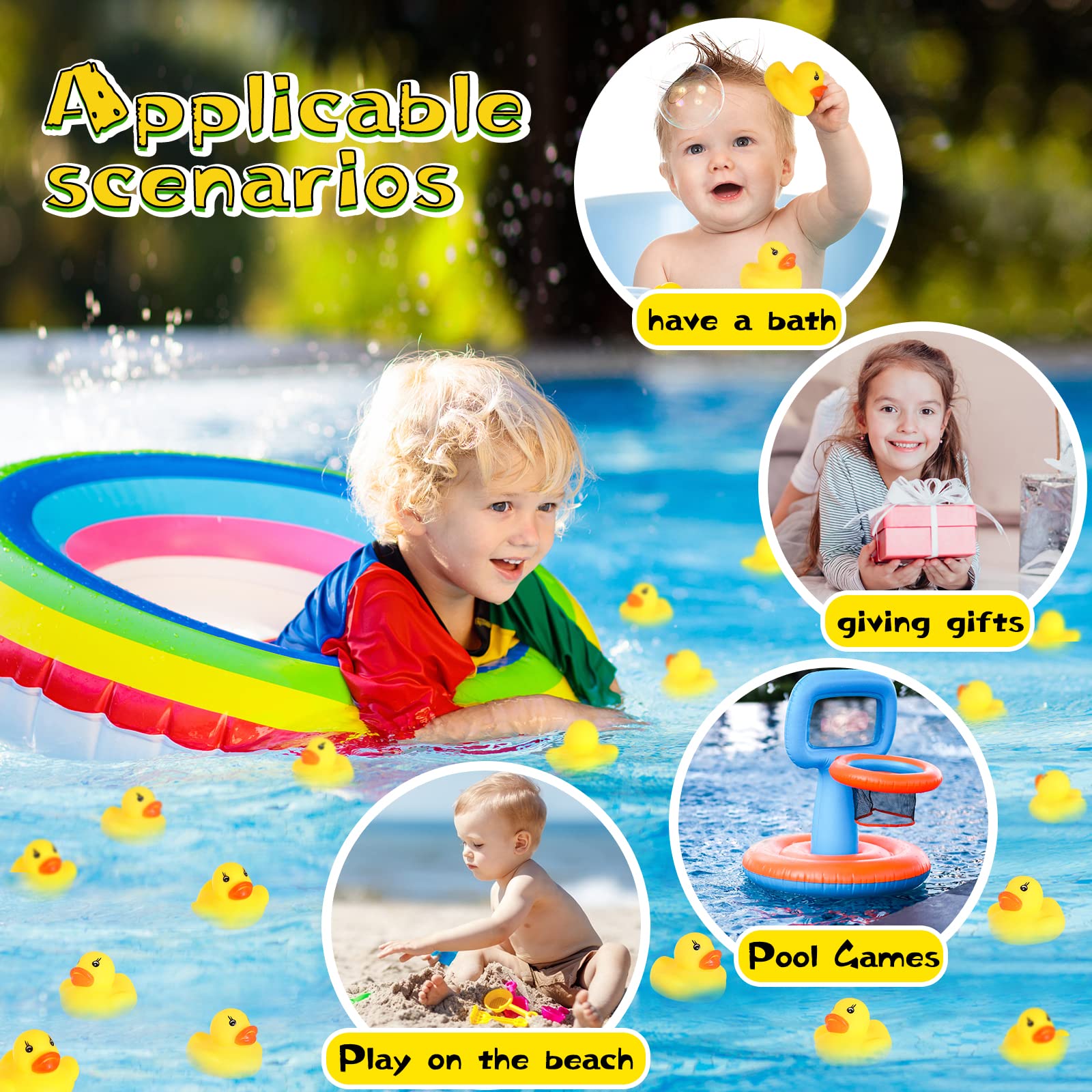 • Rubber ducks will make a perfect choice for pool party, beach party, and all kinds of kids’activities.