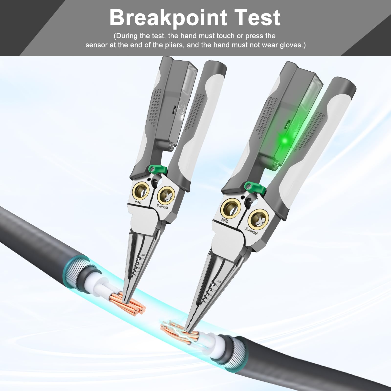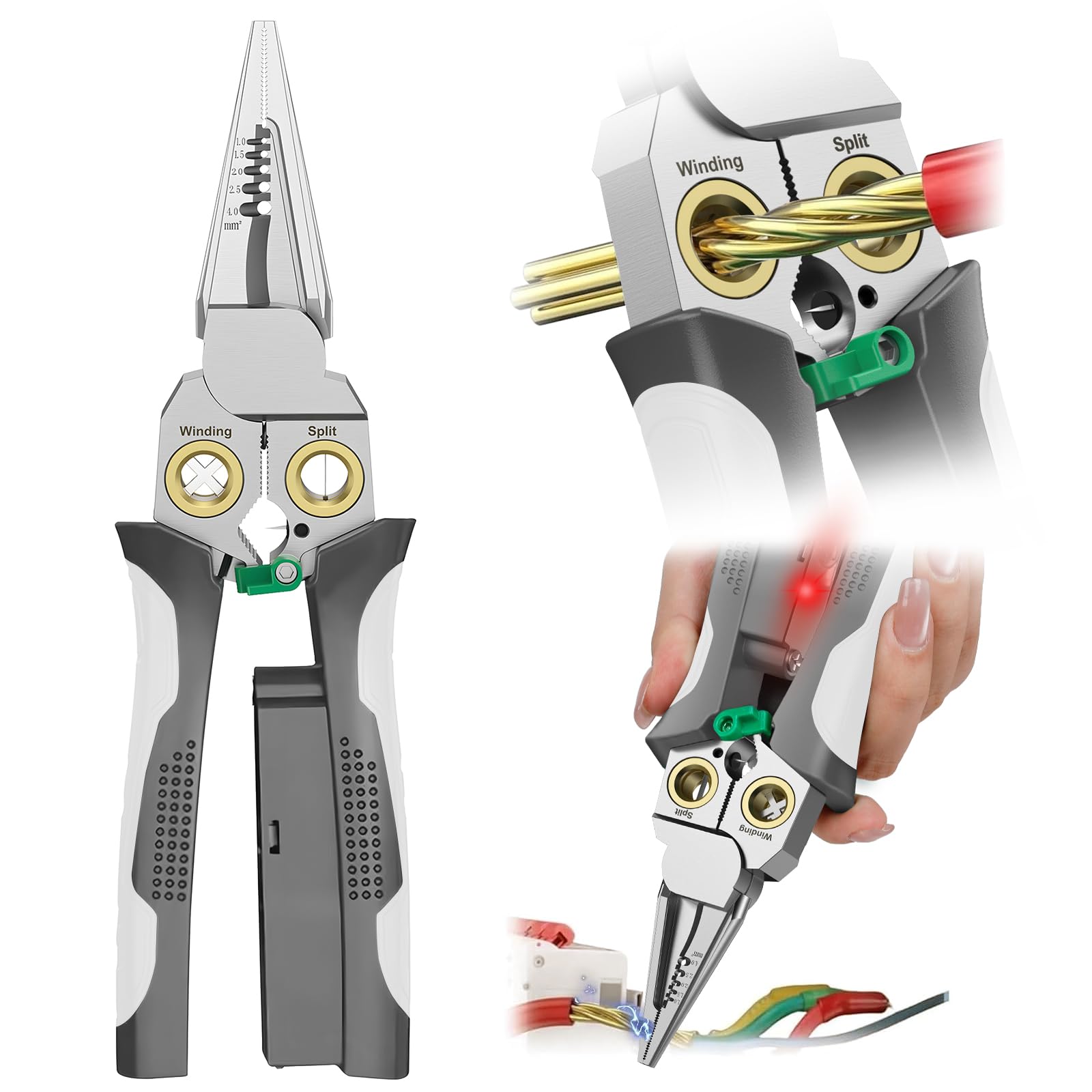 • 8-in-1 Wire Stripping Pliers With Voltage Test Feature, Offering Convenience And Accuracy For Electrical Work. Say Goodbye To Multiple Tools With This All-in-one Solution.suitable For AWG 18,14,12,10,6/1.0,1.5,2.0,2.5,4.0mm²; Cape Cable 25mm² Wire, Open Cable Outer Skin, Divide Wiring 2*1.5mm²