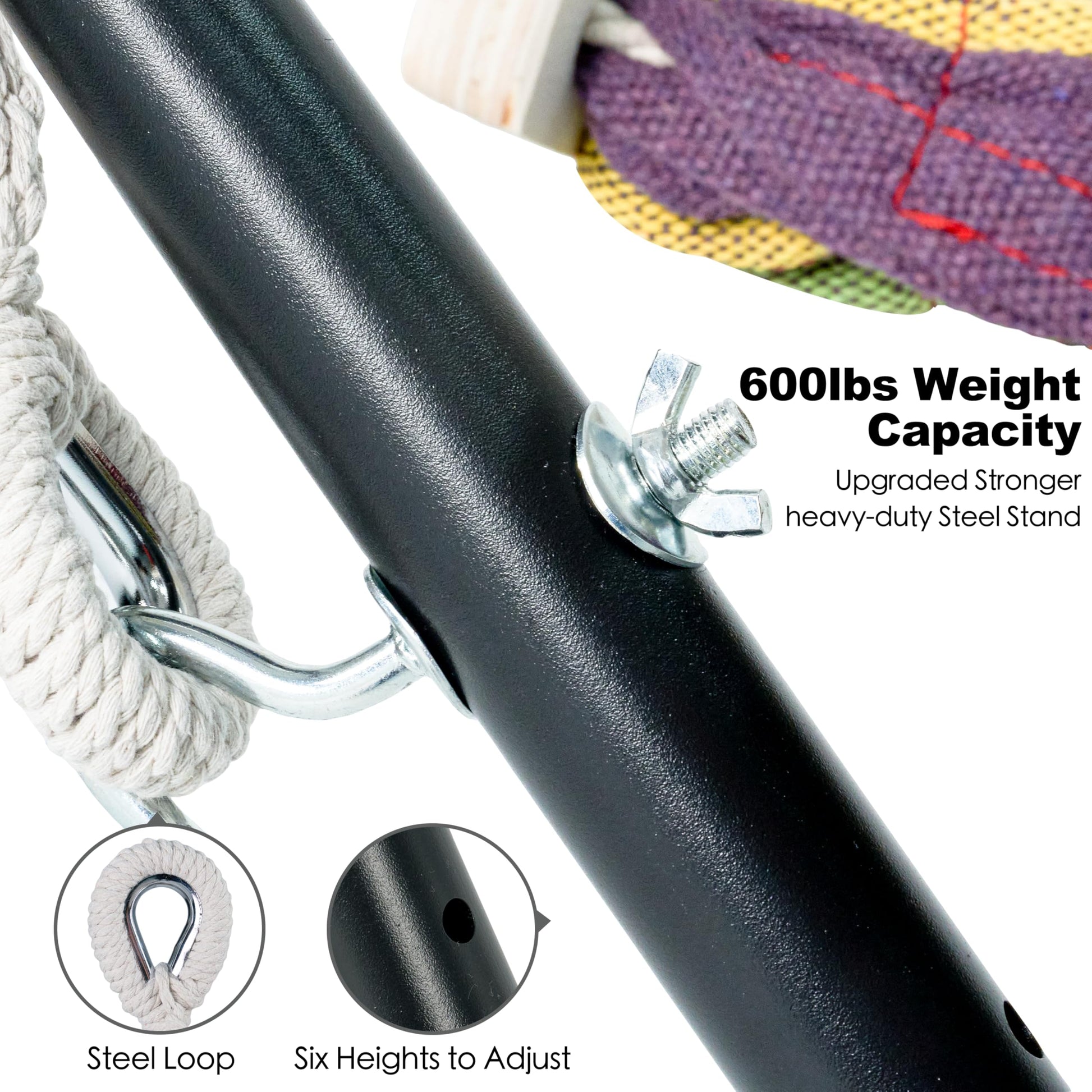 • ✅ASSEMBLES IN MINUTES: Easy to use without any tools, just align the stnad holes, tighten the knob and hang the hammock.Embrace the beauty and joy that this colorful masterpiece brings, and let it become the centerpiece of your relaxation oasis.
