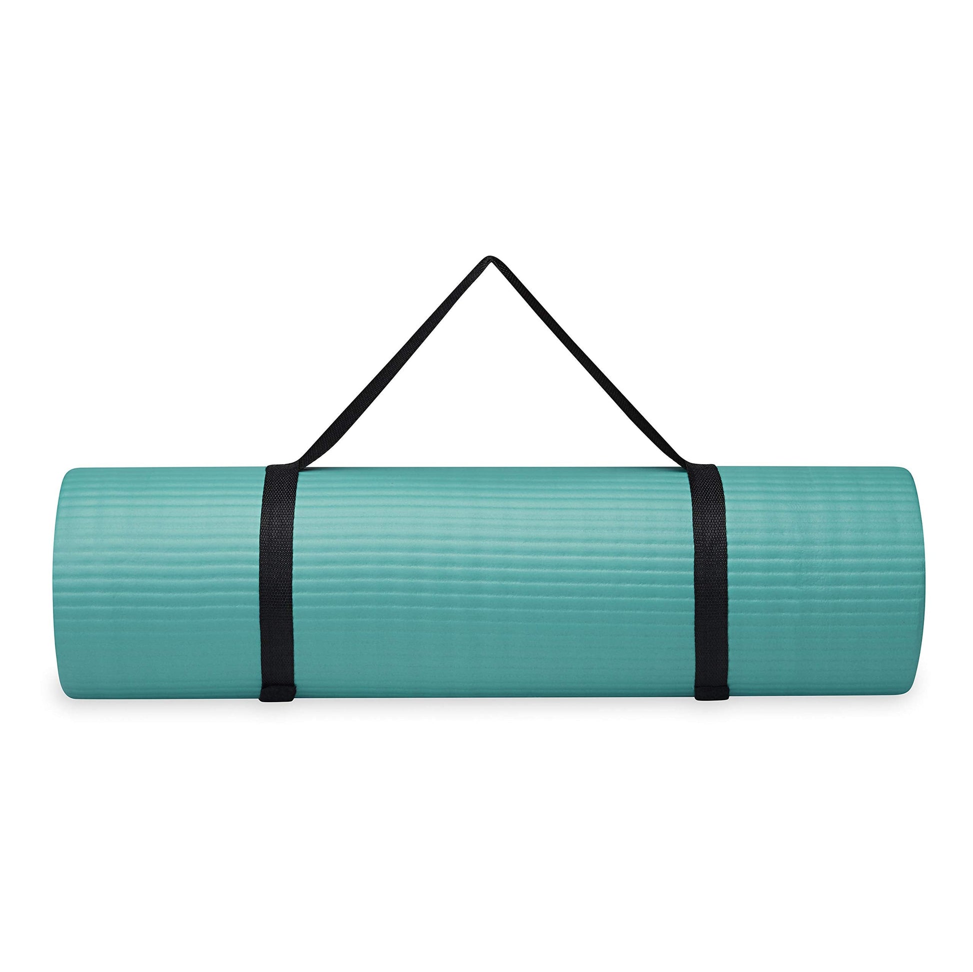Gaiam Essentials Thick Yoga Mat Fitness & Exercise Mat With Easy-Cinch Carrier Strap, Teal, 72"L X 24"W X 2/5 Inch Thick