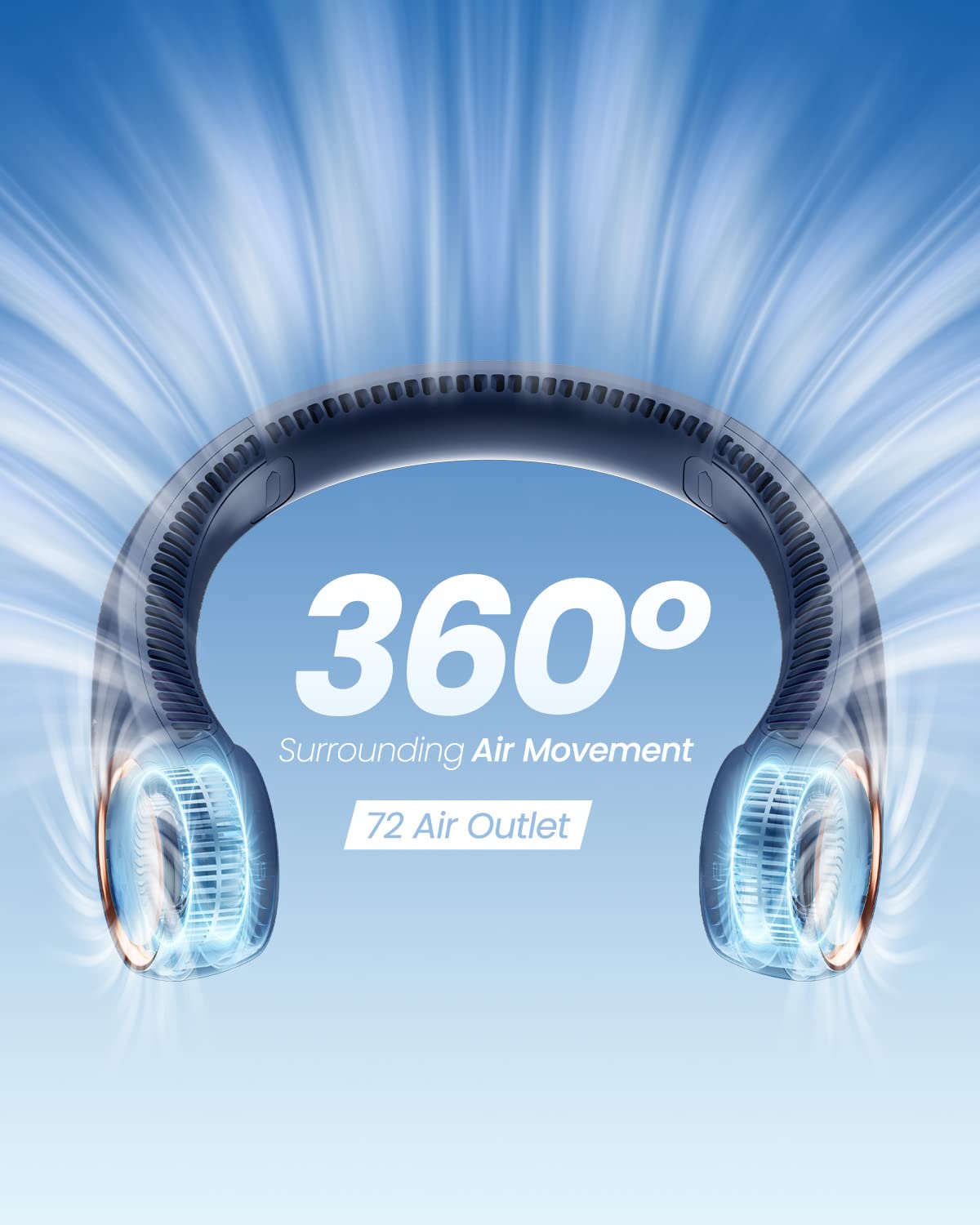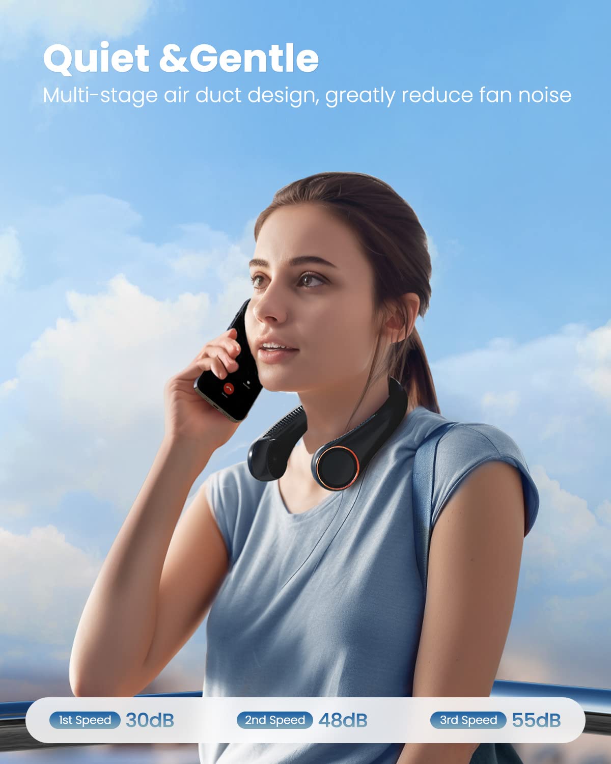• Skin-Friendly, Safe & Lightweight: Made with eco-friendly ABS and soft silicone, this neck fan stays cool to the touch for safe, comfortable use. Weighing only 8.8oz, it’s light on your neck and perfect for all-day wear