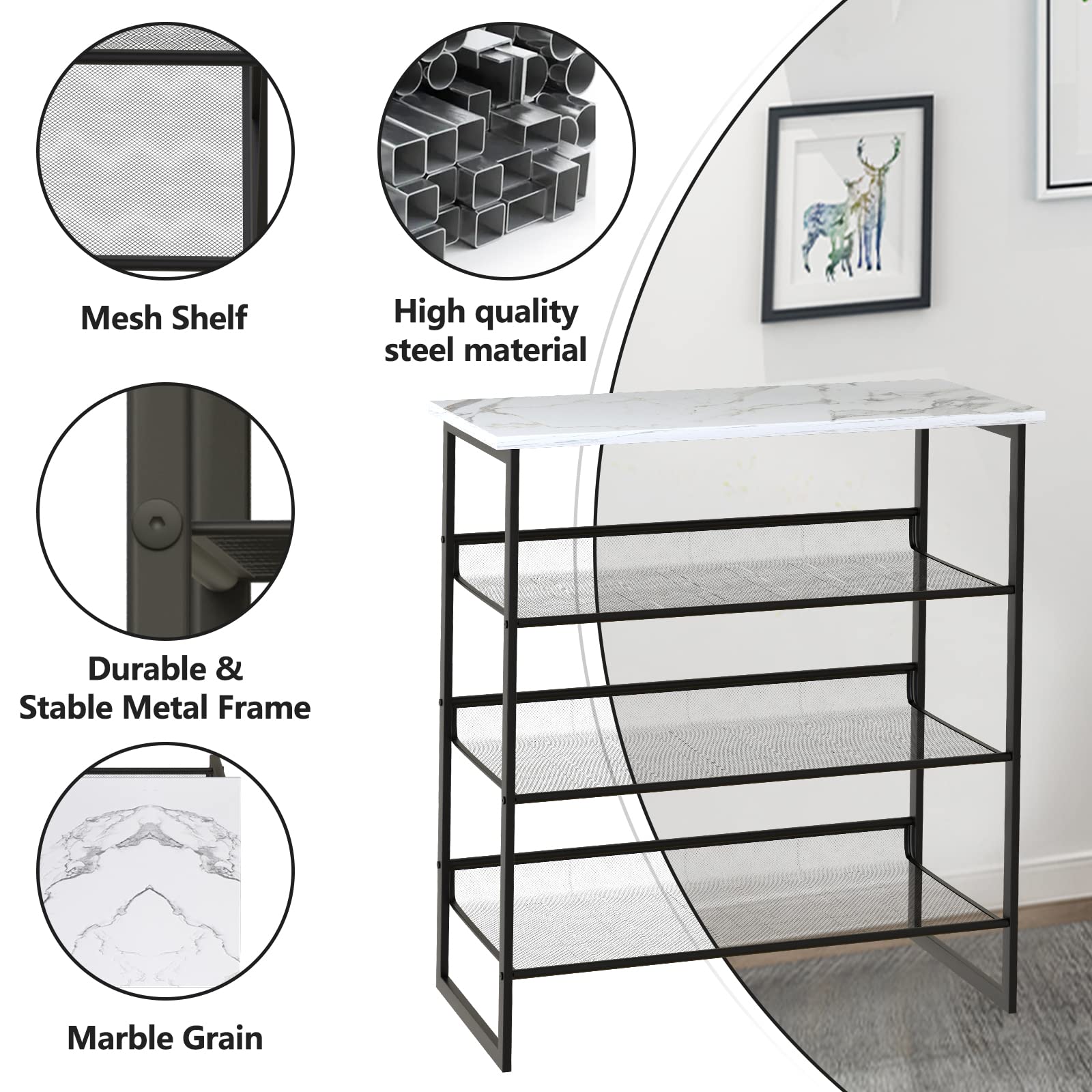 Garden 4 you 4 Tiers White Marble Shoe Rack,Freestanding Organizer Multi-Purpose Adjustable Flat and Slant Storage Rack Shoe Shelf, High Heels Potted Plant for Entryway Hallway Living Room Closet