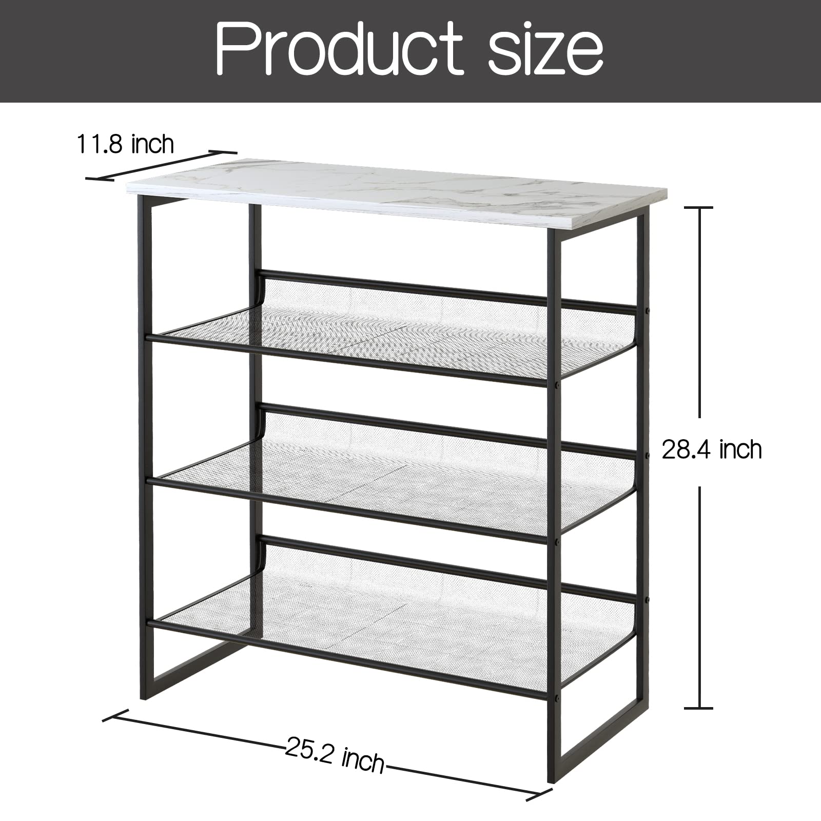 • 【SAVE SPACE】The size of this Freestanding shoe rack is 25.2 x 11.81 x 28.43 Inches, and each partition can hold 3-4 pairs of shoes. It covers a small area and has large storage space., which makes more space for you and gives you a cleaner and cleaner room.