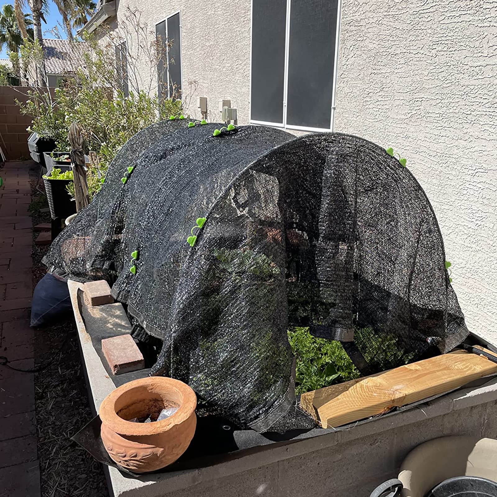 • Package: Include 30 pcs 16 Inch rust-free fiberglass greenhouse hoops, 25 pcs 2.4 inch metal connect pipes and 20 pcs 3.4 inch clipss. You can combine with 4 or more hoops to DIY your own grow tunnel, clips can be used to fix the greenhouse covering. (Garden mesh net and plant covers are not Included)