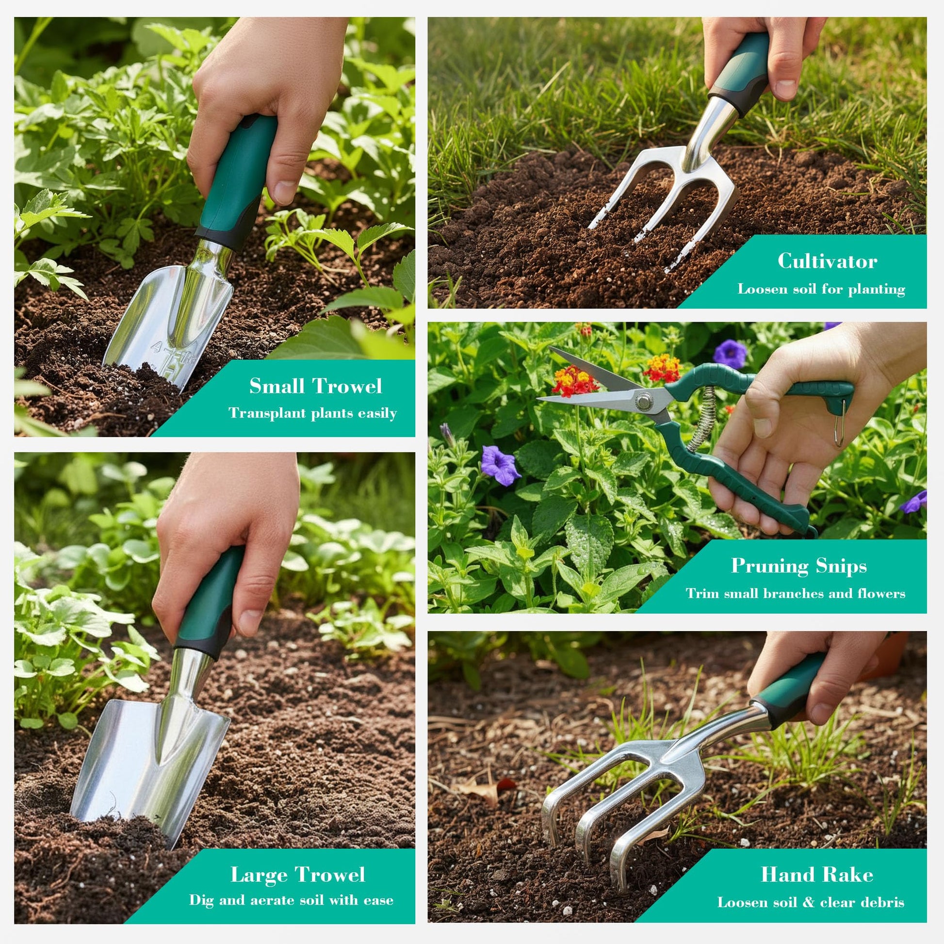 Garden Tool Set, Gardening Gifts for Women, Men, Mom, Dad, 11-Piece Heavy-Duty Aluminum Hand Tools Set with Tote Bag, Ergonomic Handles, Rust-Proof Starter Garden Kits, Gardening Essentials & Supplies