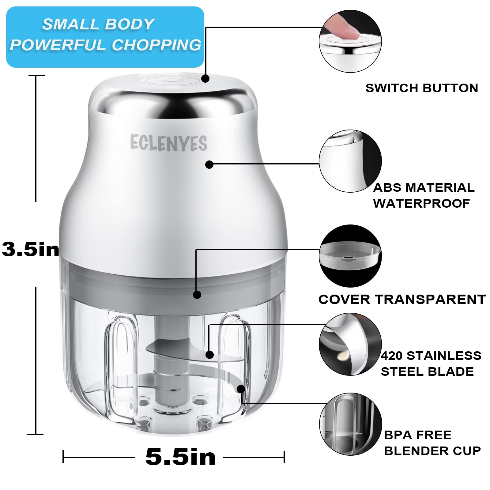 • 【20-Second Garlic Master|Powerful Motor & Blade】 Chop, mince, or blend garlic/onions/herbs effortlessly! The 45W motor + 304 stainless steel blades crush ingredients evenly in 20 seconds—no more hand-chopping mess.