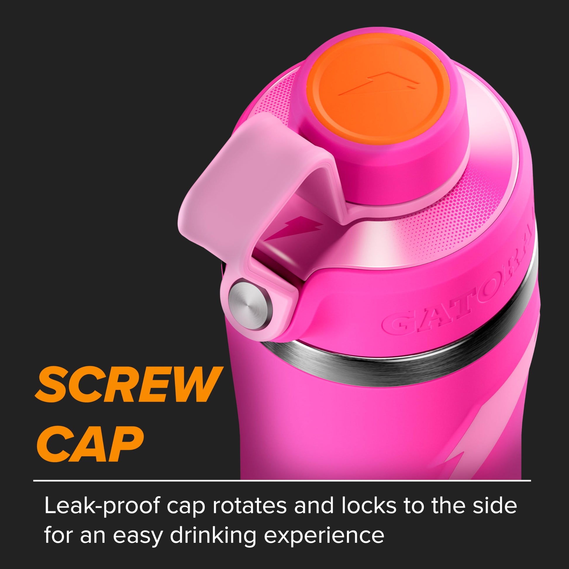 • Screw Cap: Leak-proof cap rotates and locks to the side for an easy drinking experience