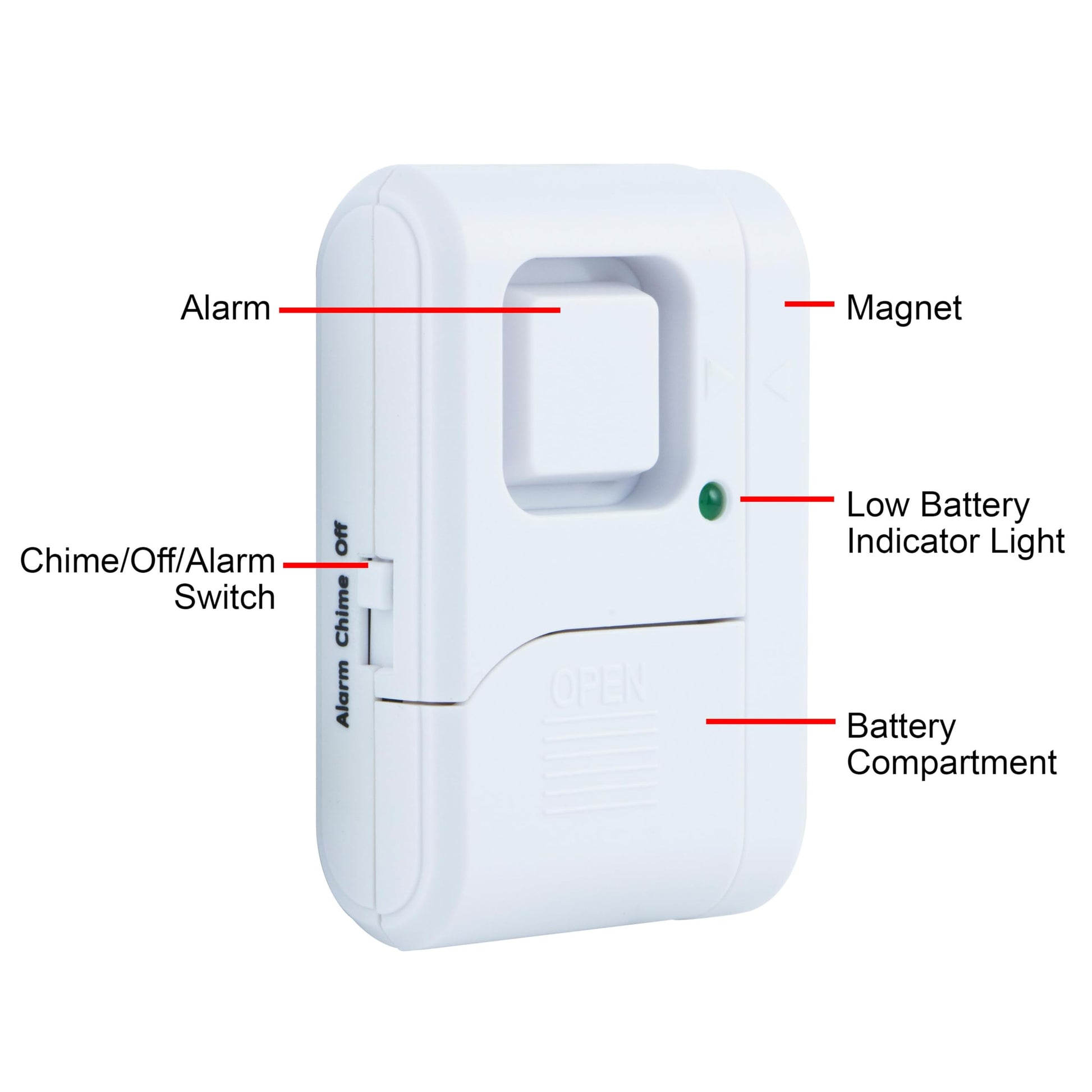 • Safe and Secure – Ward off would-be intruders with a 120-decibel alarm triggered by a high-quality magnetic sensor, or choose for a chime to sound when windows or doors are opened and closed