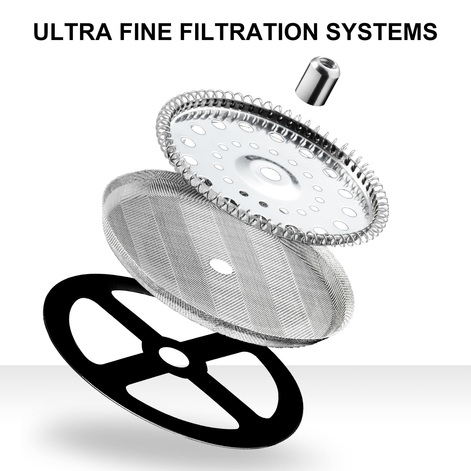 • Ultrafine Filter: The filter of our french press is made of 304 stainless steel. The thickened and dense double-layer filter effectively filters coffee grounds and tea leaves while extracting the aromatic oils and subtle flavors of coffee. Allowing you to enjoy more delicious coffee