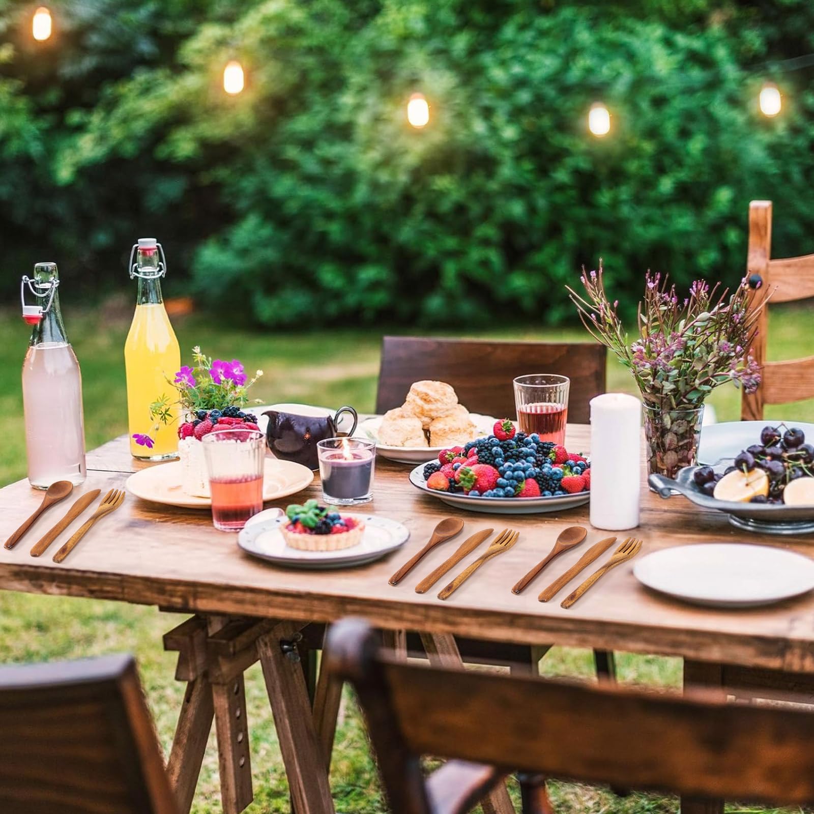 • Multi-purpose: the reusable wooden tableware set can be applied not only for daily meals, such as fried rice, dessert, soup, salad, noodles, etc., but also for Korean and Japanese cuisine; With light weight, it is very suitable for travel, outdoor activities, and camping, picnic and so on