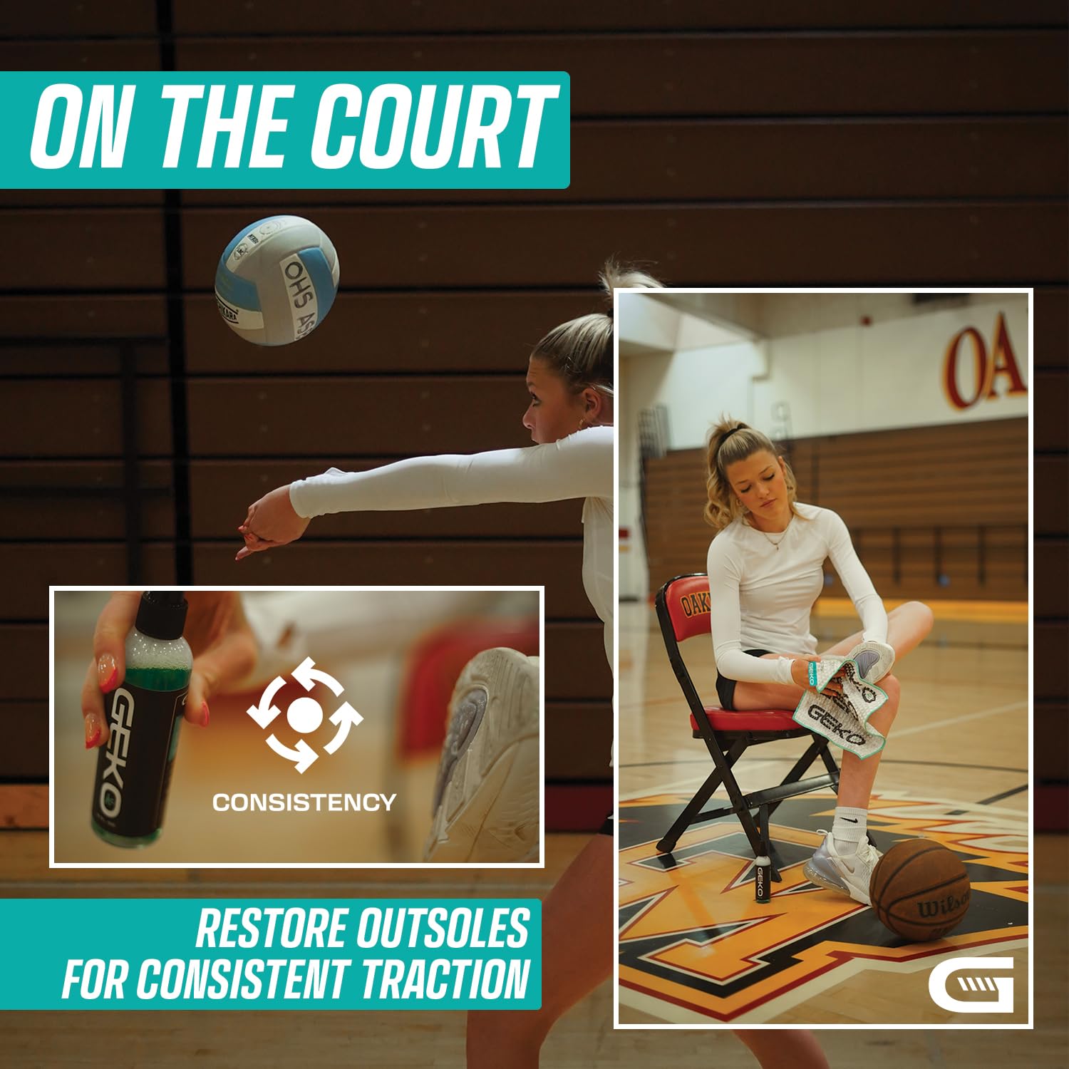• Basketball and Volleyball Court Grip: Geko restores the bottom of basketball and volleyball shoes in seconds; giving players improved agility and maneuverability on the court. Prevent slips and slides with quicks cuts and change in direction. Better footwork leads to better performance on the basketball and volleyball court