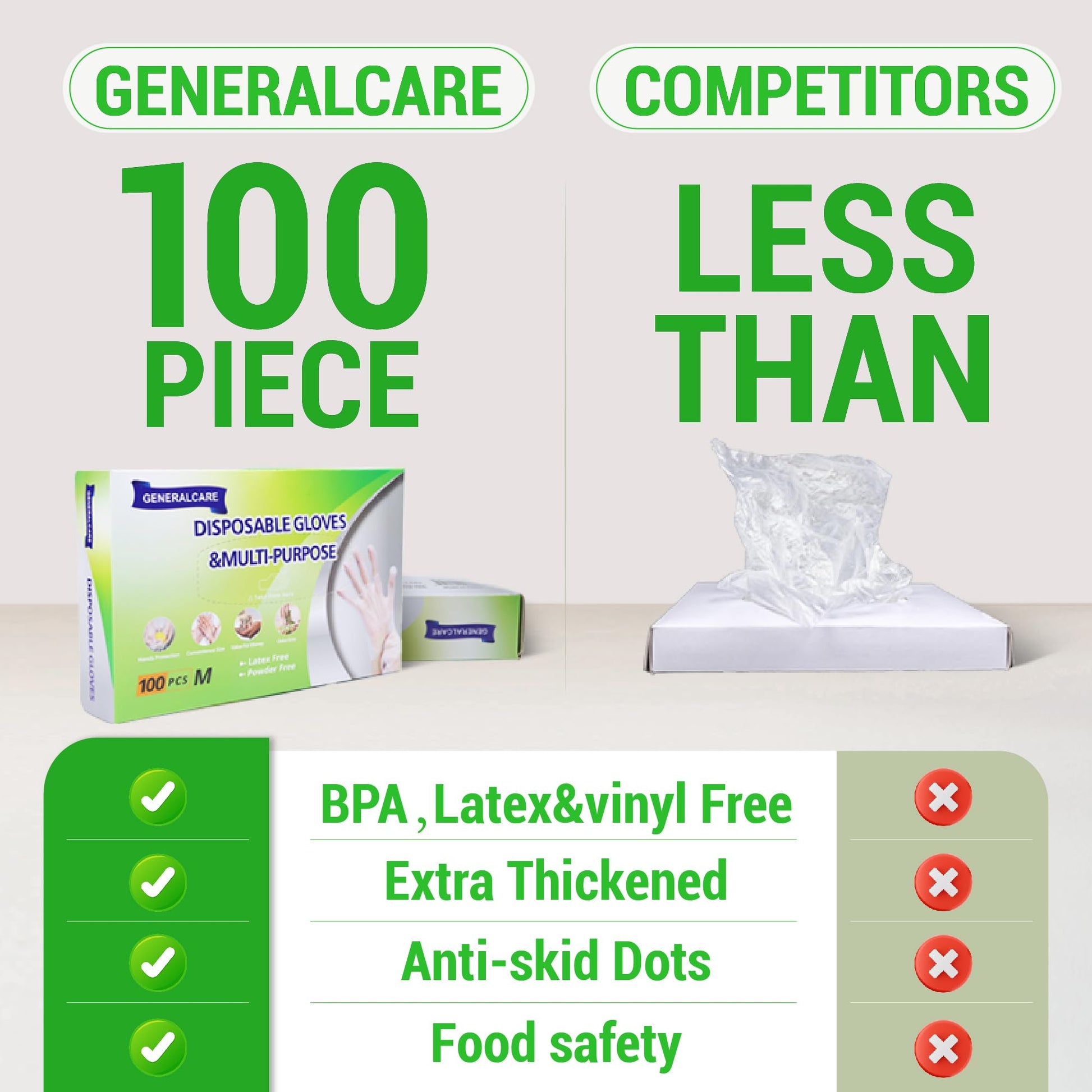 GENERALCARE 100PCS Disposable Plastic Gloves Food Handling Service Gloves Disposable For Cooking
