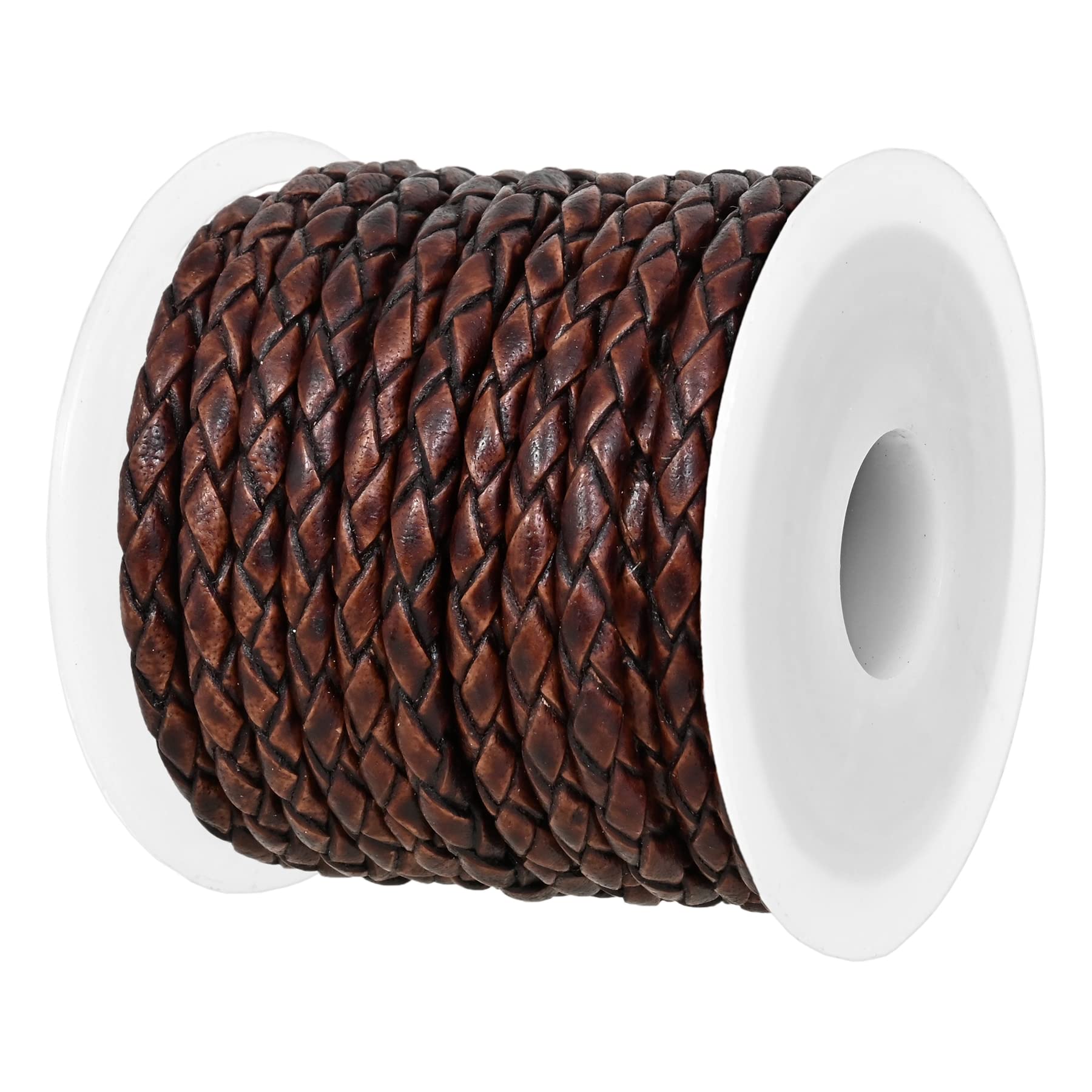 GENIQUE Real/Genuine Round Braided Leather Cord String Rope Folded, Leather Rope for Crafts, Jewelry Making, Necklace, Bracelets (5 Metres) (3mm, Antique Brown Distressed)