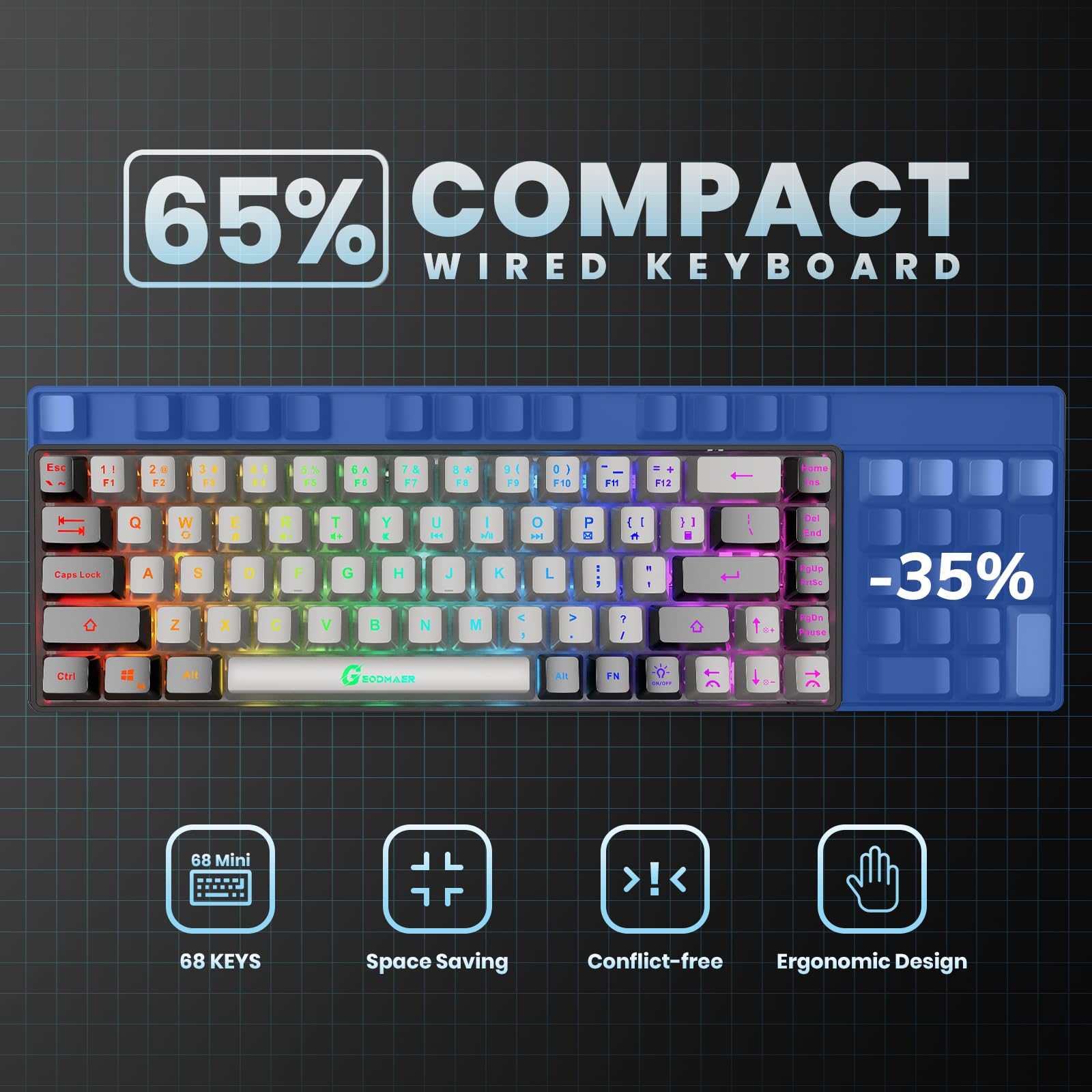 GEODMAER 65% Gaming Keyboard, Wired Backlit Mini Keyboard, Ultra-Compact Anti-Ghosting No-Conflict 68 Keys Membrane Gaming Wired Keyboard for PC Laptop Windows Gamer
