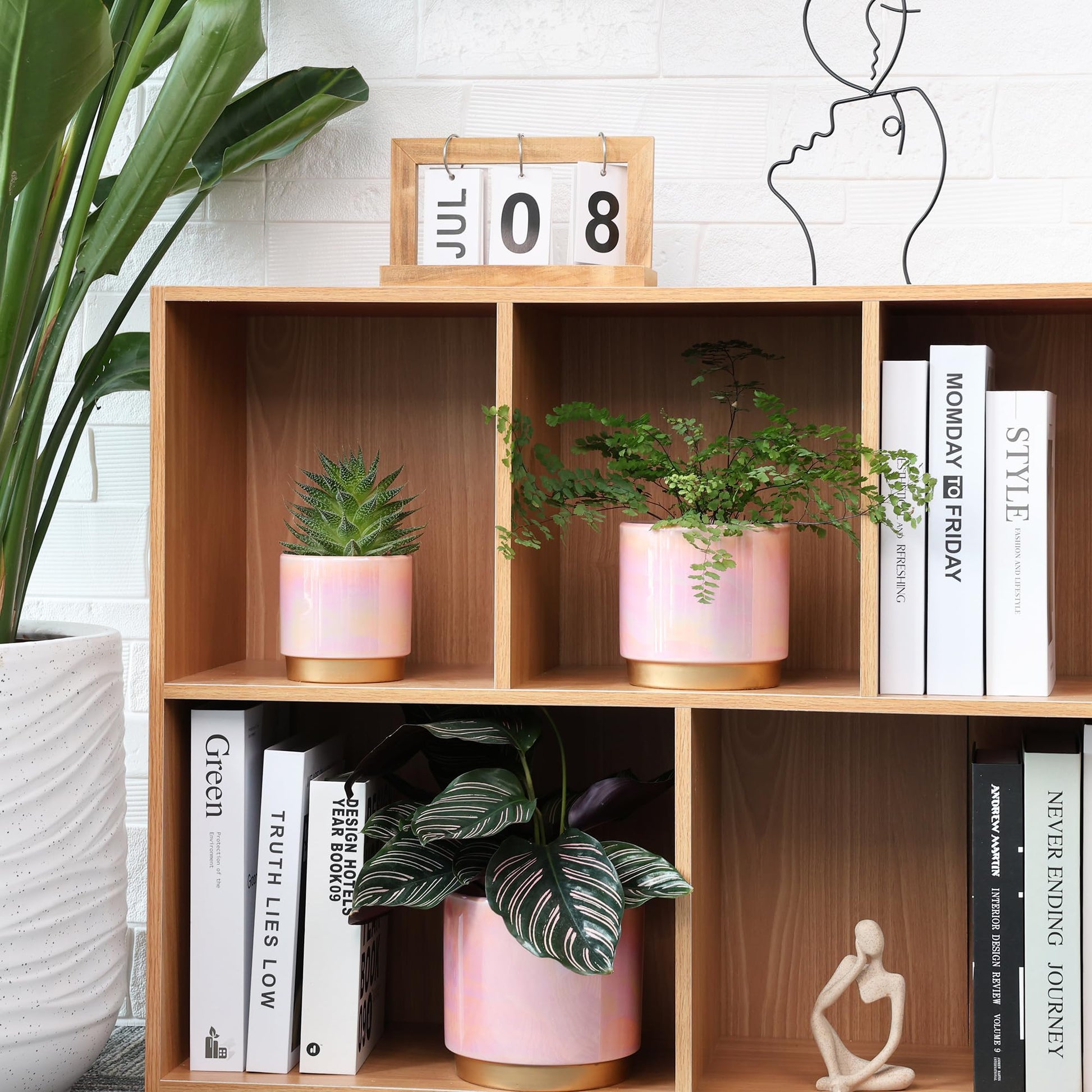 Gepege Pink Indoor Plant Pots for Plants, Ceramic Planter with Drainage Hole, 6.0 inch+5.0 Inch+4.0 Inch. Succulent Orchid Flower Pot - Rainbow Pearl Glaze