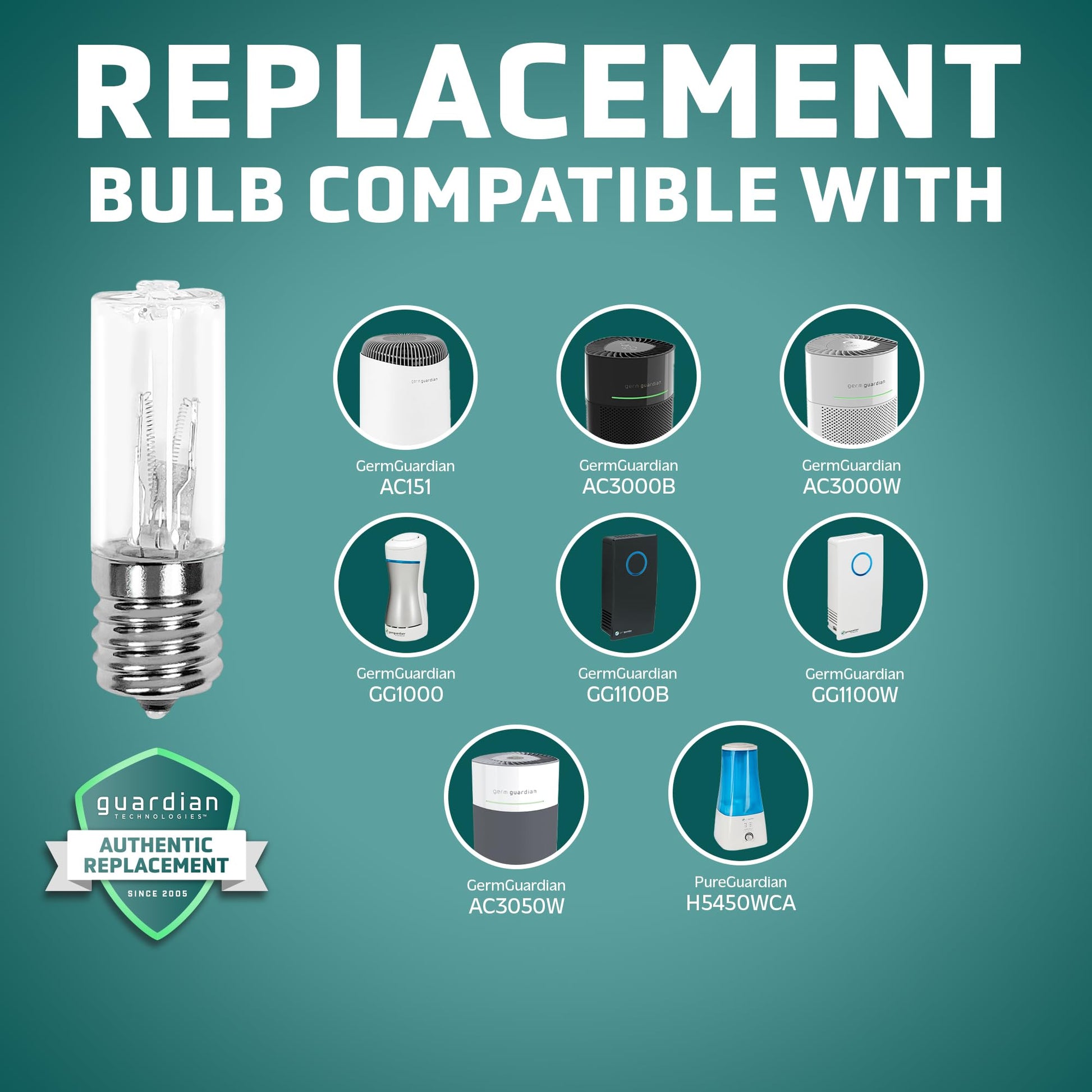 • This is a GENUINE GermGuardian UV C bulb for GermGuardian Air Sanitizer Models GG1000, GG1100W and GG1100B and PureGuardian Humidifier model H5450BCA