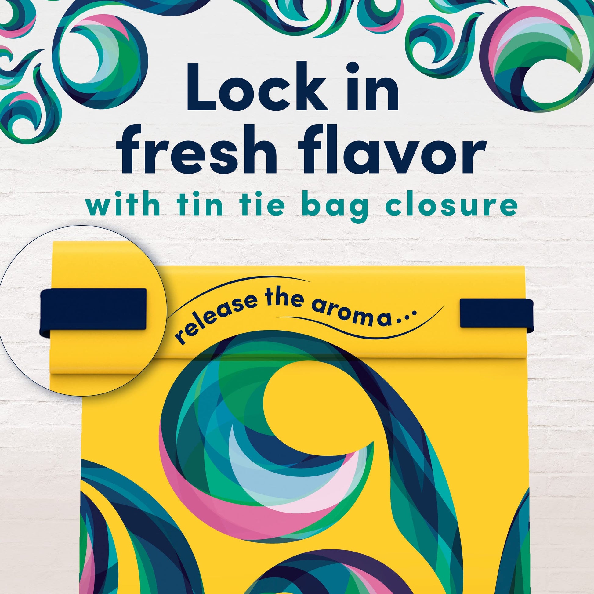 • Reclosable bag of ground coffee with fresh lock tin tie retains flavor and aroma