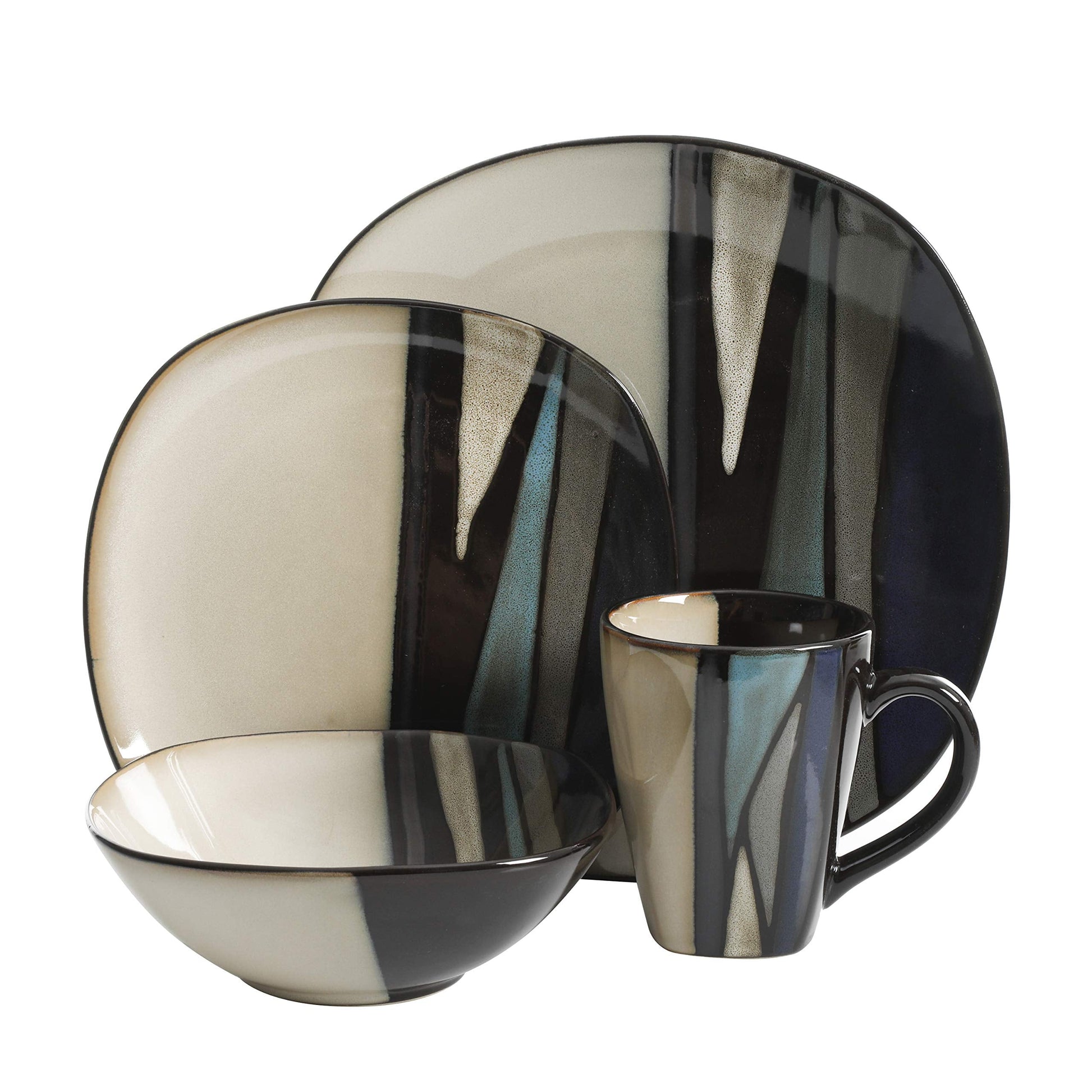 Details: The gorgeous Gibson Elite althea 16 piece dinnerware set features a unique, colorful, elegant design amplified by its reactive glaze finish, which means that no two pieces are exactly alike. This set includes four dinner plates, four dessert plates, four bowls and four mugs. Get your set today