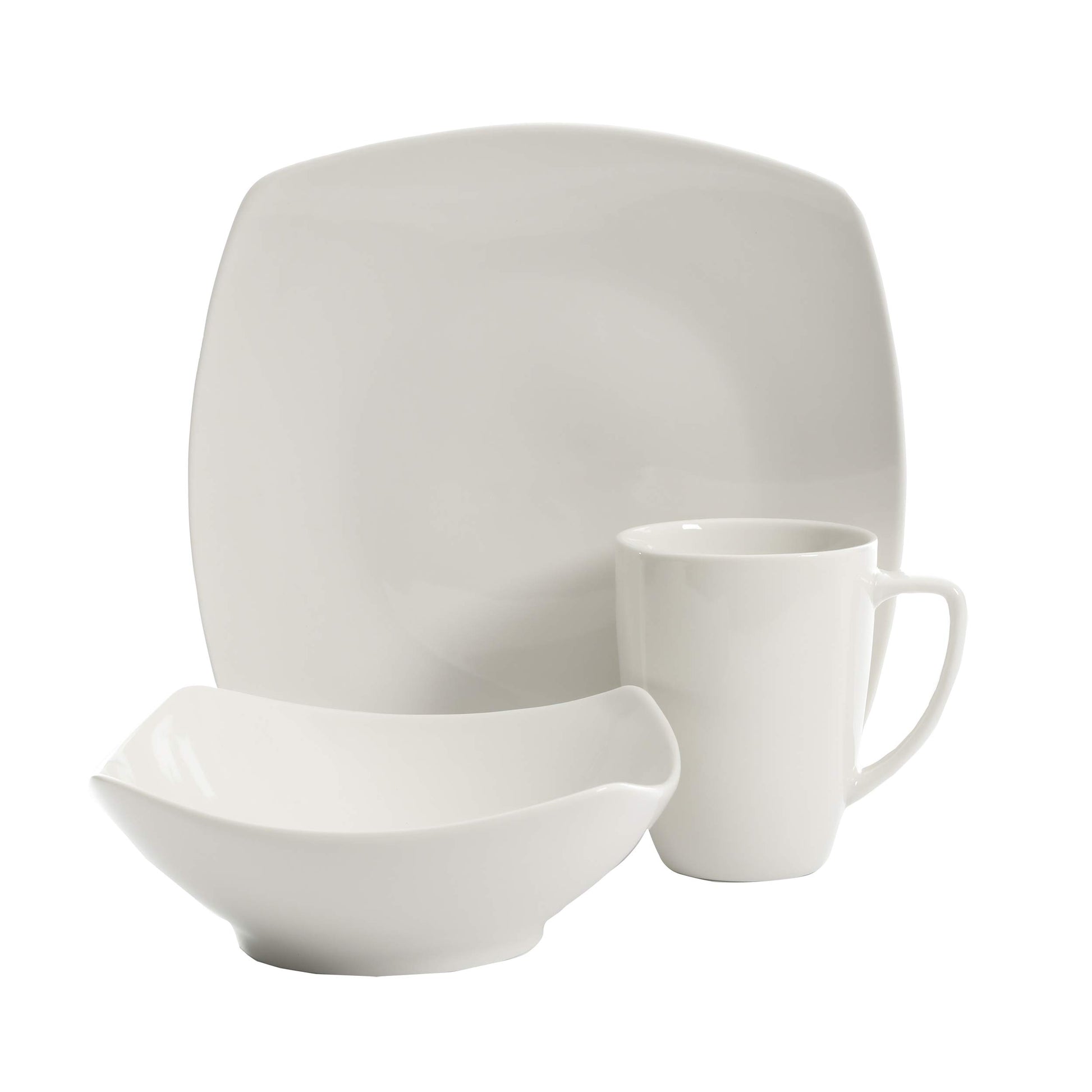 Gibson Home Amelia Court Porcelain Chip and Scratch Resistant Dinnerware set, Service for 4 (12pcs), White (Soft Square)