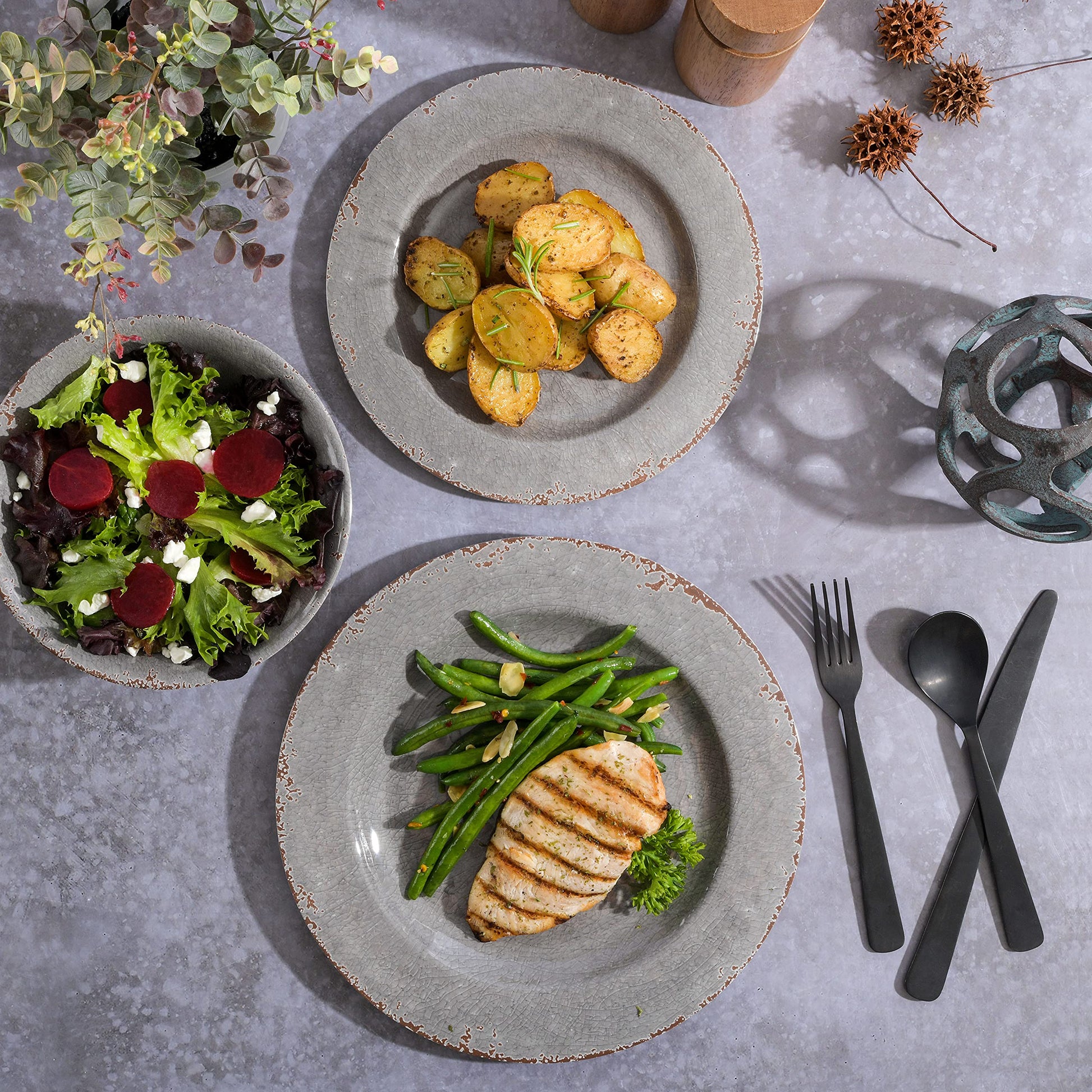 Gibson Home Mauna Melamine Plastic Dinnerware Set, Service for 4 (12pcs), Grey Rustic