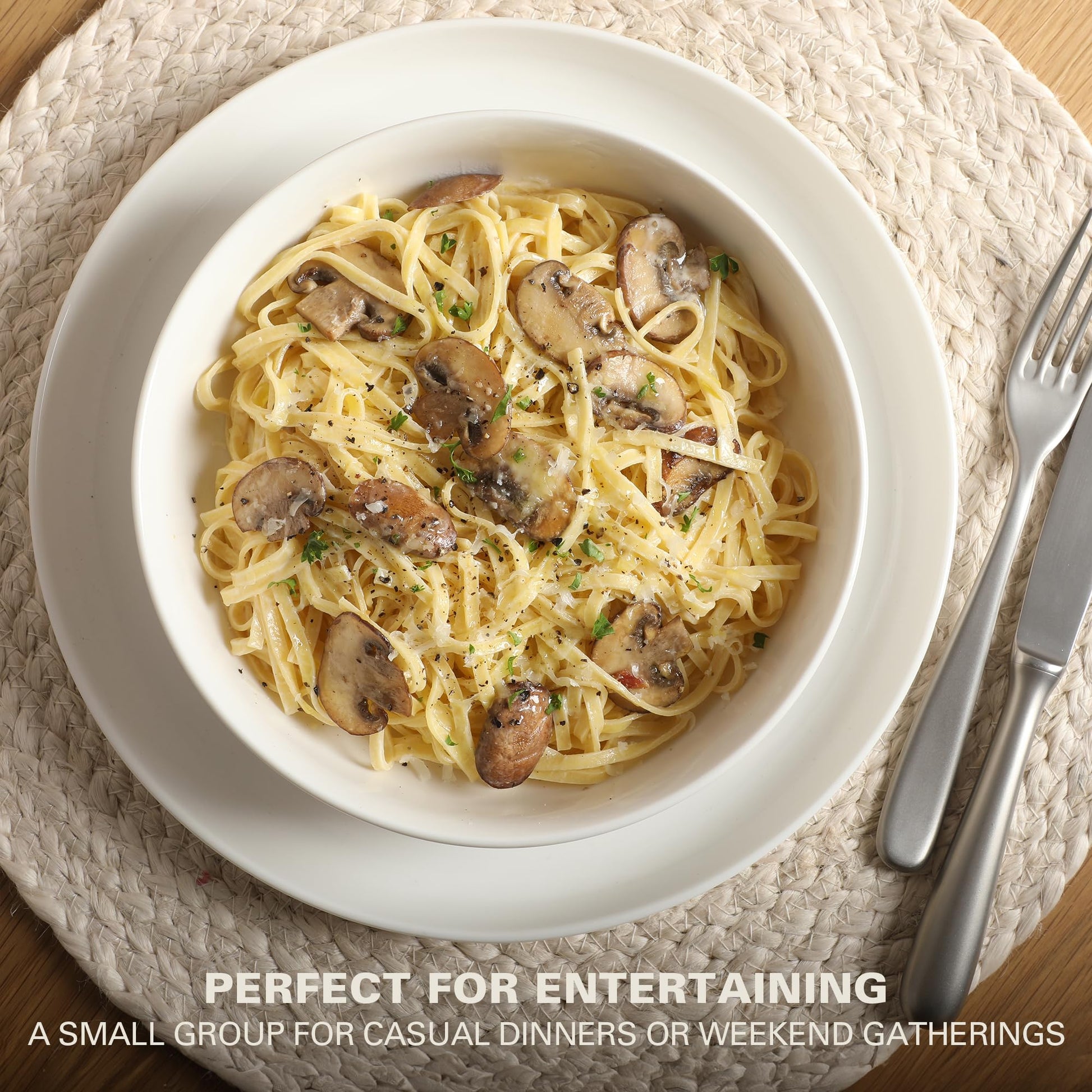 • CONTEMPORARY DESIGN: a classic pearl porcelain combined with a contemporary lip to create a sleek and aesthetically pleasing dinnerware set with plates and bowls