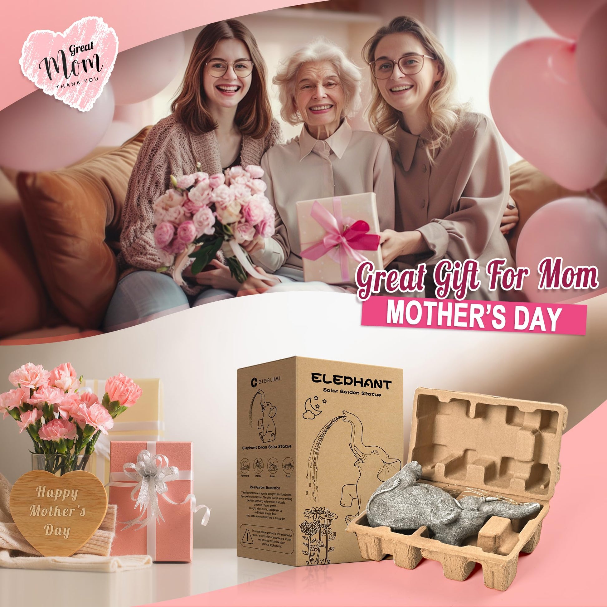 GIGALUMI Solar Garden Decor Upgraded Elephant Statues Outdoor, Birthday Gifts for Women Mom Grandma Senior Elder, Elephant Ornament for Balcony, Garden, Patio, Yard, Lawn (Twinkling Lights Only)