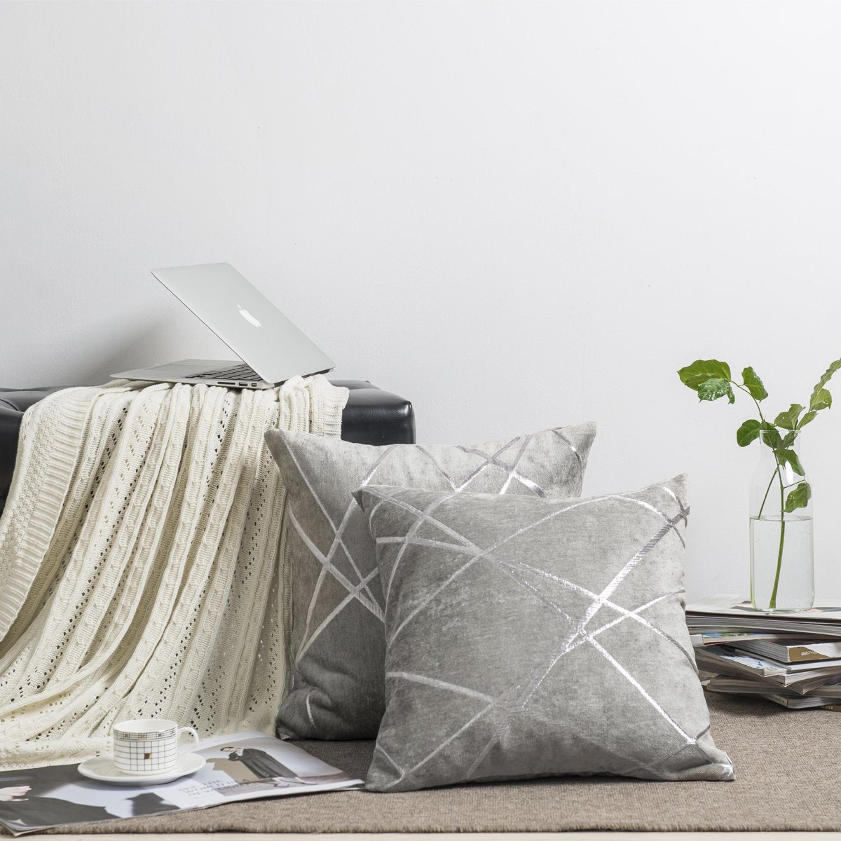• FEATURES&DESIGN:Silver Grey Colorway , size 22 x 22' / 55 x 55 cm, Tailored for 22 x 22 inch insert .The design for this decorative couch pillow cases covers is a quality silver jacquard stripe on both side ,