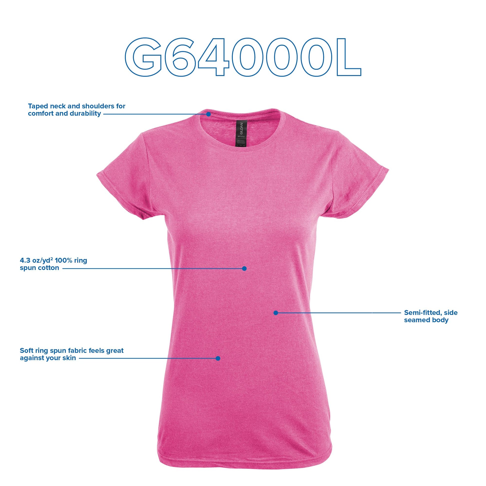 Gildan Women's Softstyle Cotton T-Shirt, Style G64000L, Multipack, Azalea (2-Pack), Large