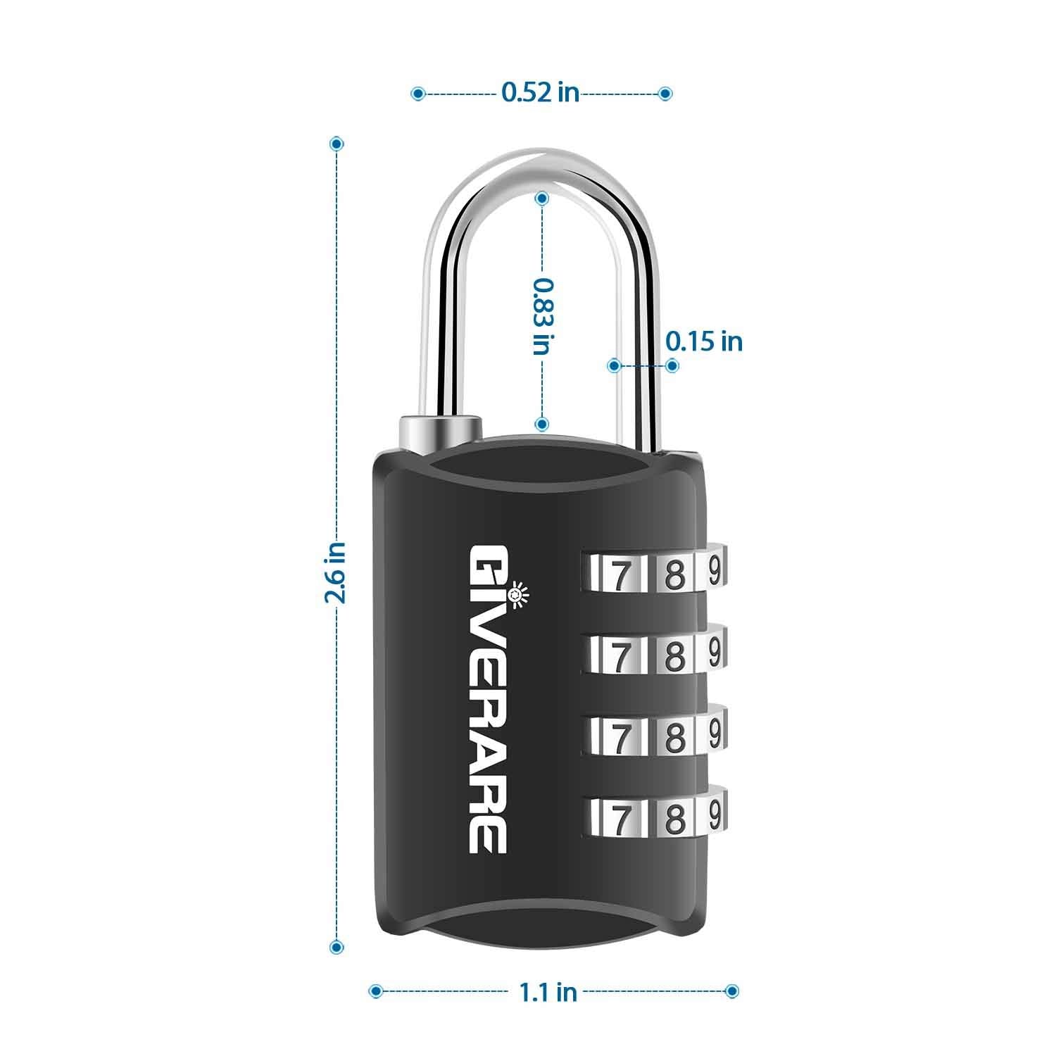 • VERSATILE LOCK FOR ALL SITUATIONS: GIVERARE 4-digit luggage lock features compact size & light weight design. The 0.15” sturdy hardened steel shackle is thin enough to thread through all standard sized zippers and lock holes on the market