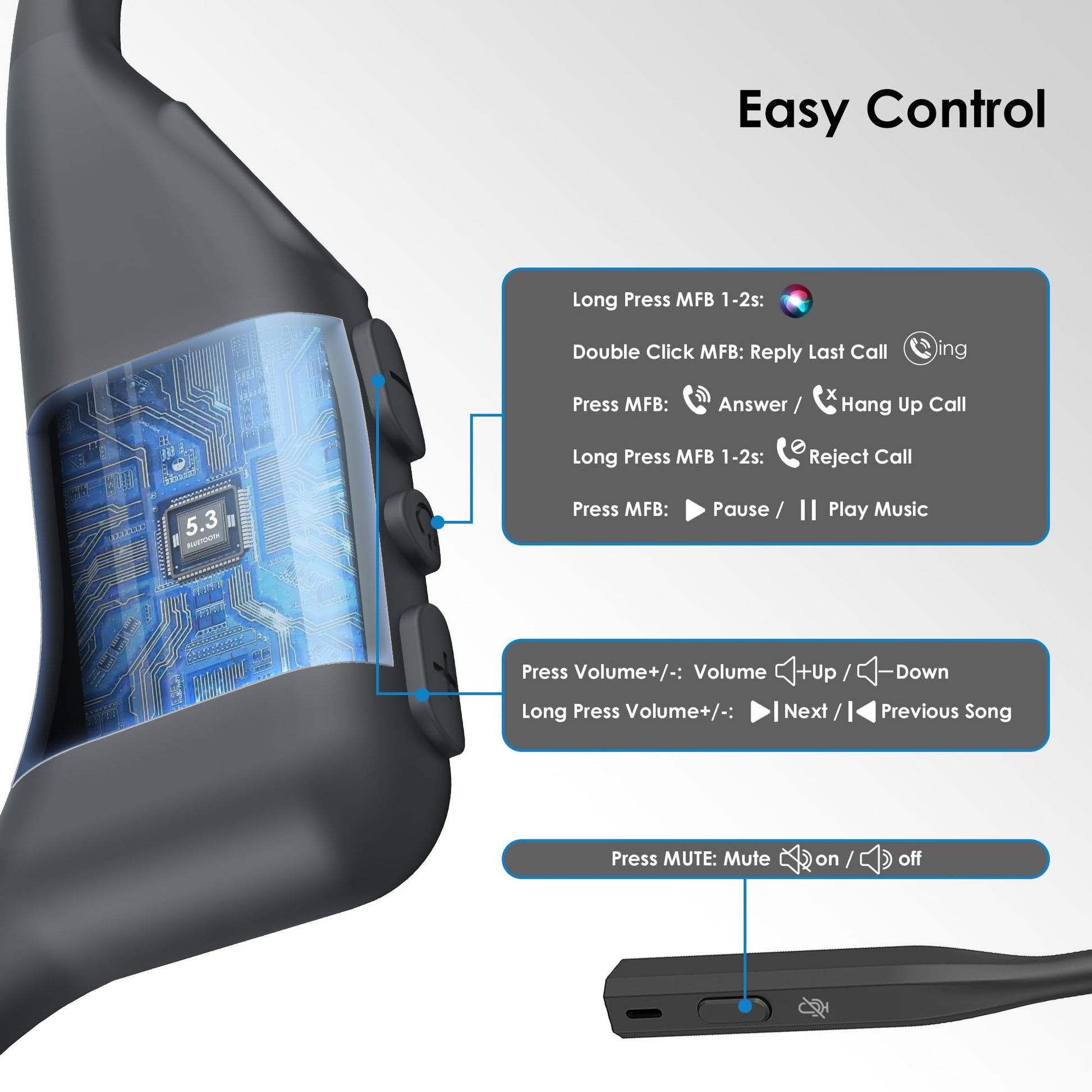 • Easy to Use: Our open ear headphones with microphone feature a multi-function button. One click to answer and end a call, double click to redial the last number. Long press 1-2s MFB to wake up voice assistant. Easy to adjust the volume and switch to the previous/next track. Note: The MFB can only answer call on cell phones