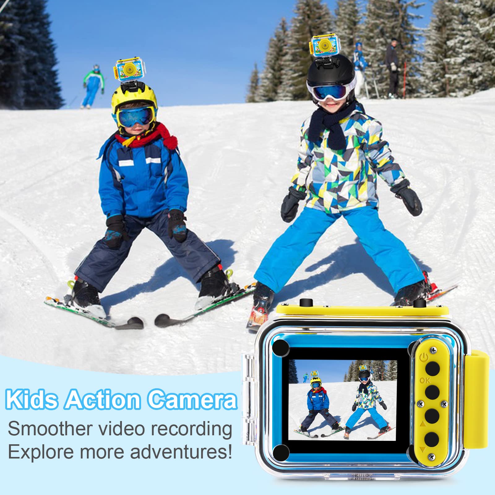 • Shockproof & Waterproof Camera: Our kids underwater camera comes with waterproof and shockproof case, providing effective anti-fall protection. Your kids can capture amazing pictures up to 30 meters (100 feet) underwater. This digital camera for kids is easy to install, ideal for your kids to record their brave moments in swimming, skating, biking and skateboarding. Great pool toys for kids ages 8-12.