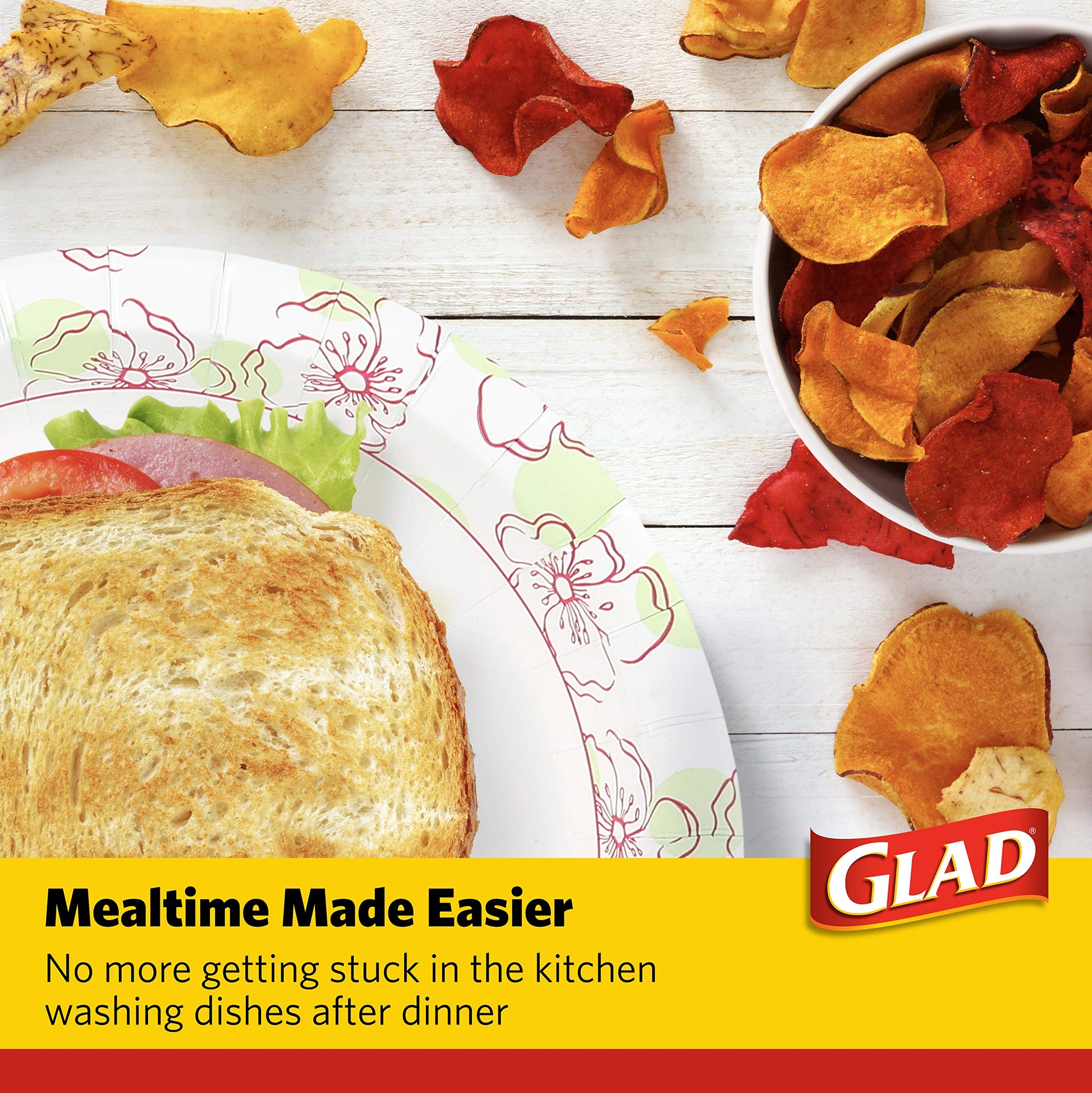 Glad is an environmentally-conscious company that delivers quality and reliability, while also doing its part to protect the environment and make responsible choices. Glad is constantly innovating its products and looking for new ways to become greener, whether it's with trash bags, food storage containers, or kitchen supplies, and the paper straws are no exception. Glad paper plates will make the perfect party supplies for any event. Why buy plain white paper plates, when you could buy these beautifully printed plates instead? These paper plates are made with biodegradable paper and are compostable! The fact that they are compostable paper plates means that the plate will disintegrate on its own into the earth and will not create waste! If you want paper plates for your home, look no further! You can feel proud eating out of a Glad paper plate, knowing you are doing your small part to help the planet. These biodegradable plates will make you feel good about your kitchen/party supplies.This is perfect if you are looking for a paper plates bulk pack that will give you enough plates on hand for an event, or if you simply need a paper plate at home. Glad small paper plates like these dessert plates, picnic plates, or party plates are great for many disposable plates purposes in a plate set.Satisfaction guaranteed. If you are not satisfied with your purchase, please email us directly. YOUR SATISFACTION IS OUR PRIORITY: If you have any questions or feedback on this product, please reach out to us.