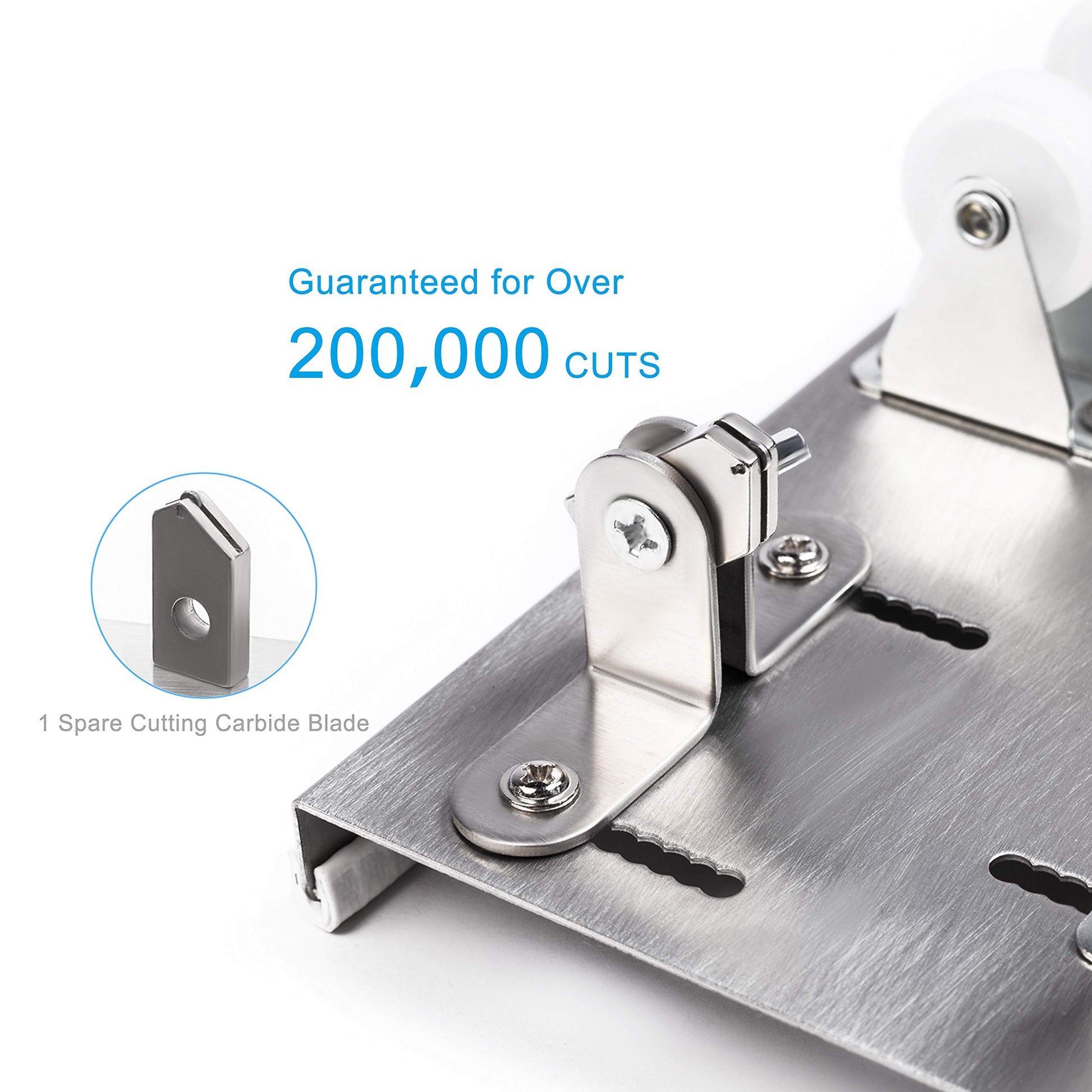 • 【UPGRADED STRUCTURAL DESIGN & FEATURES】 This bottle cutter includes 5 support wheels created specifically to better stabilize the bottle, 2 ultra-strong diamond carbide blade guaranteed for over 400,000 cuts, built with stable and solid made of stainless steel bottom plate to the highest quality standards you should expect.