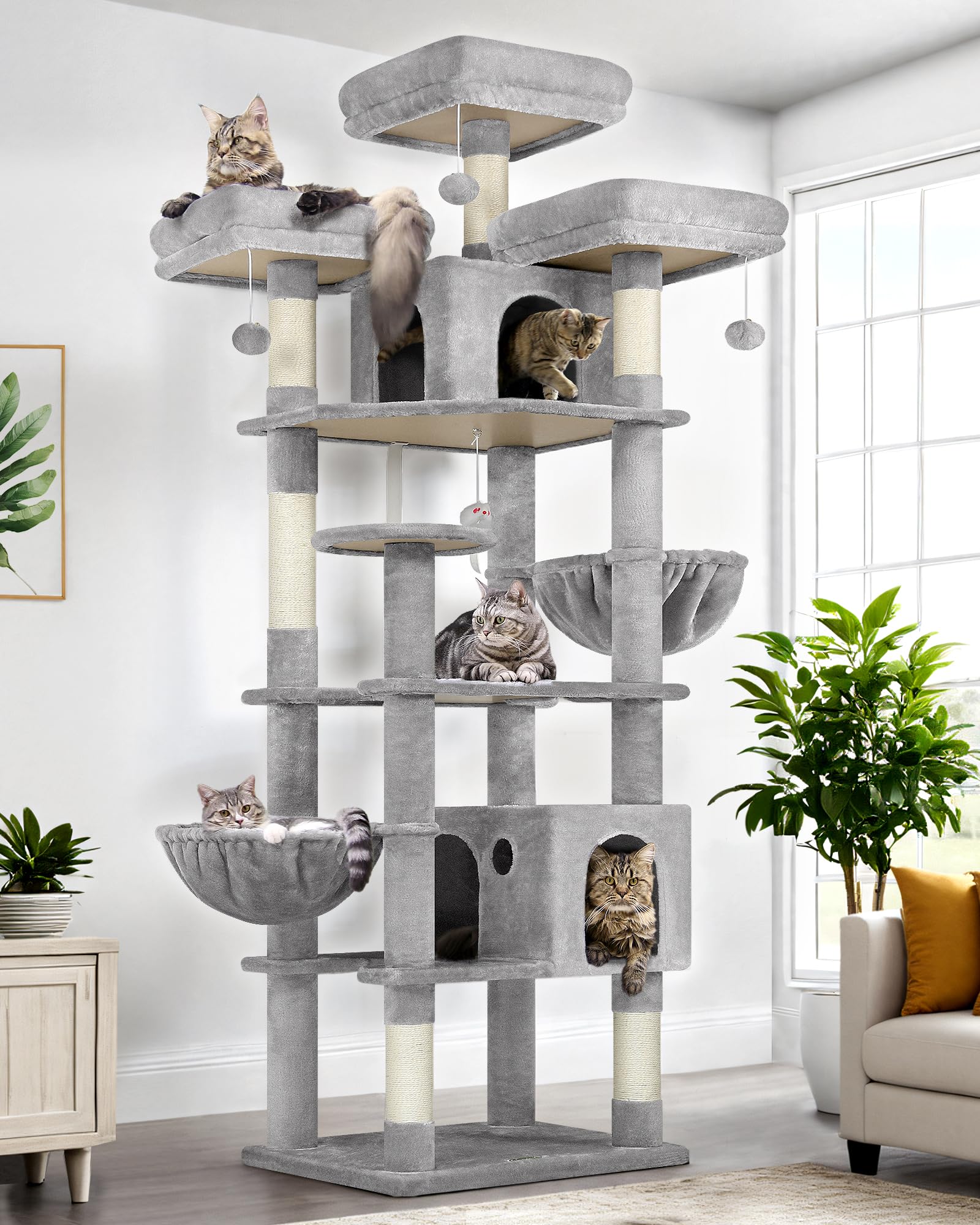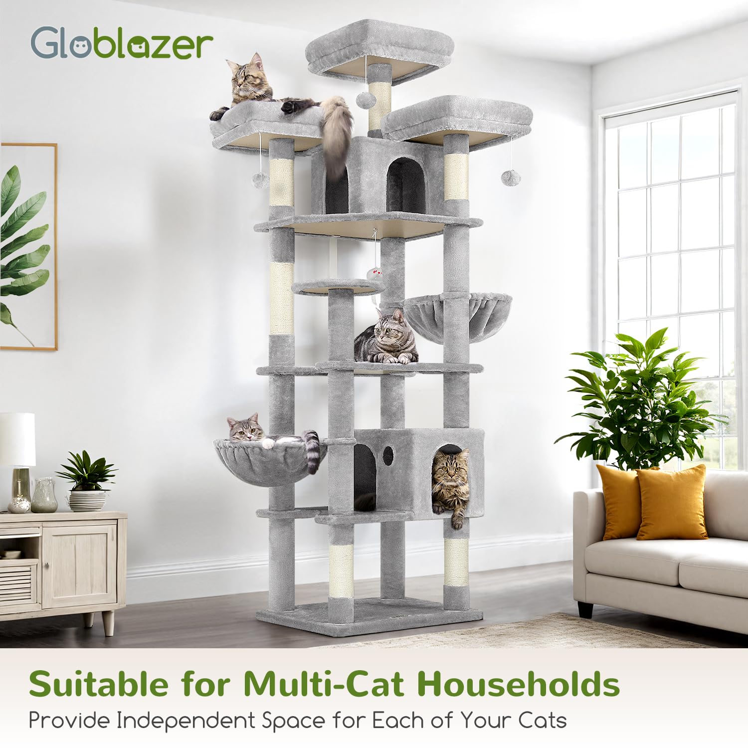 Globlazer Cat Trees and Towers for Multiple Adult Cats, 82-inch XXL Tall Cat Tree Tower for Indoor Cats with Scratching Post, 3 Perches, 2 Condos, 2 Hanging Baskets, F82, Light Grey