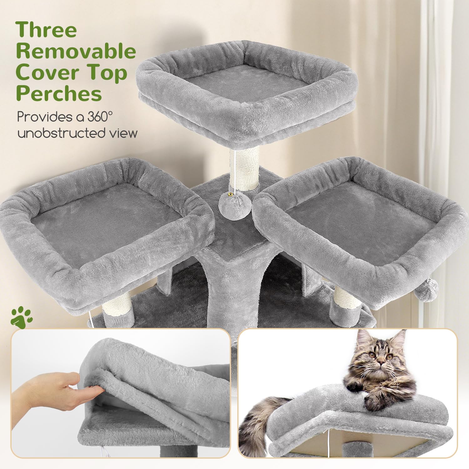 • Royal Observation Station: F82 extra large cat tree with 3 top perches provides a perfect perch for your cats to bask in sunlight, surveying their domain with a regal view, while enjoying delightful interactions with birds outside