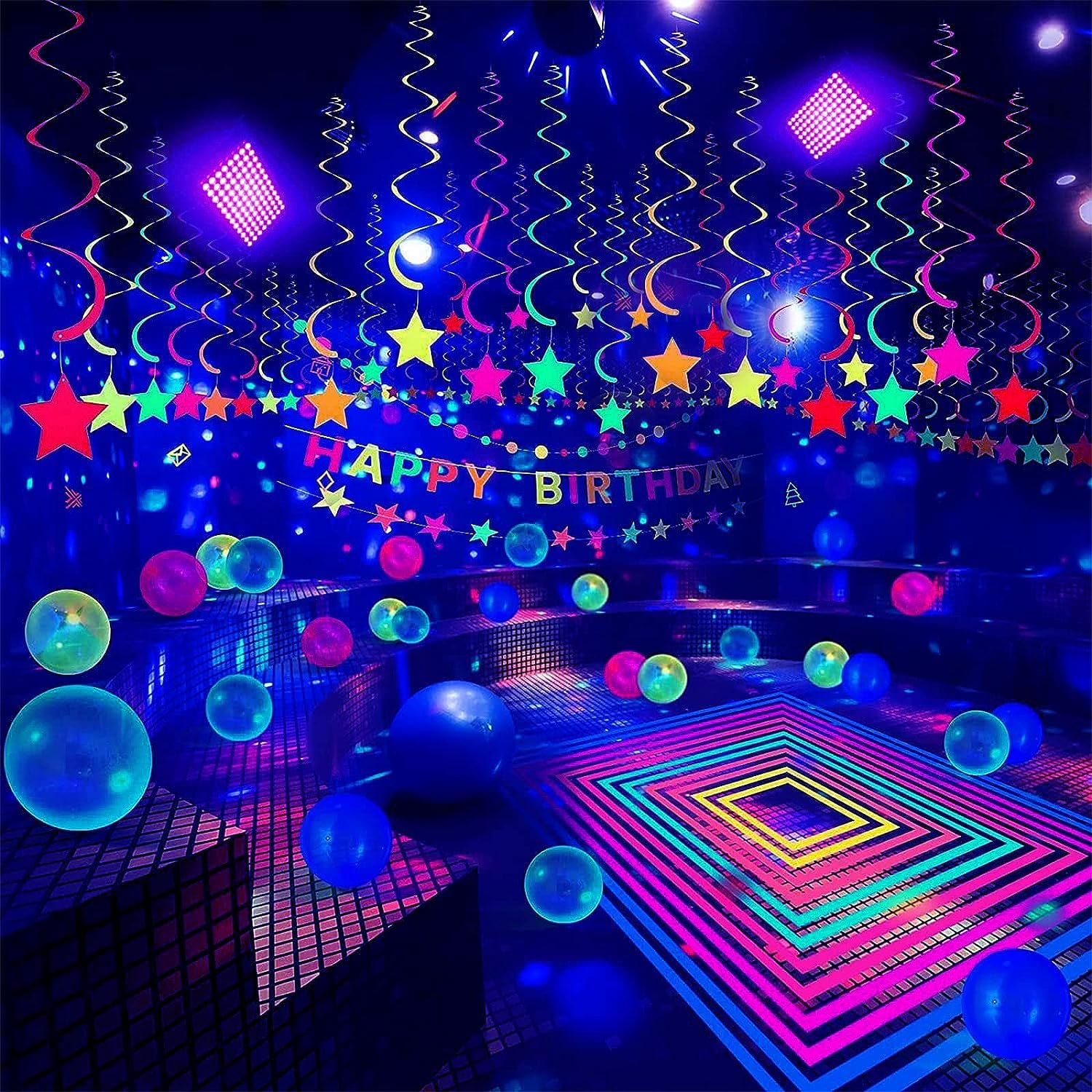 • 【Powerful Black Light】 Glostars 100 W UV black light projector uses 96 high-power LED lamp beads and a beam angle of 180°, which can emit a black light of 395-400 nm. The powerful 100 W black light can cover spacious places such as living room, garden and other indoor and outdoor venues.