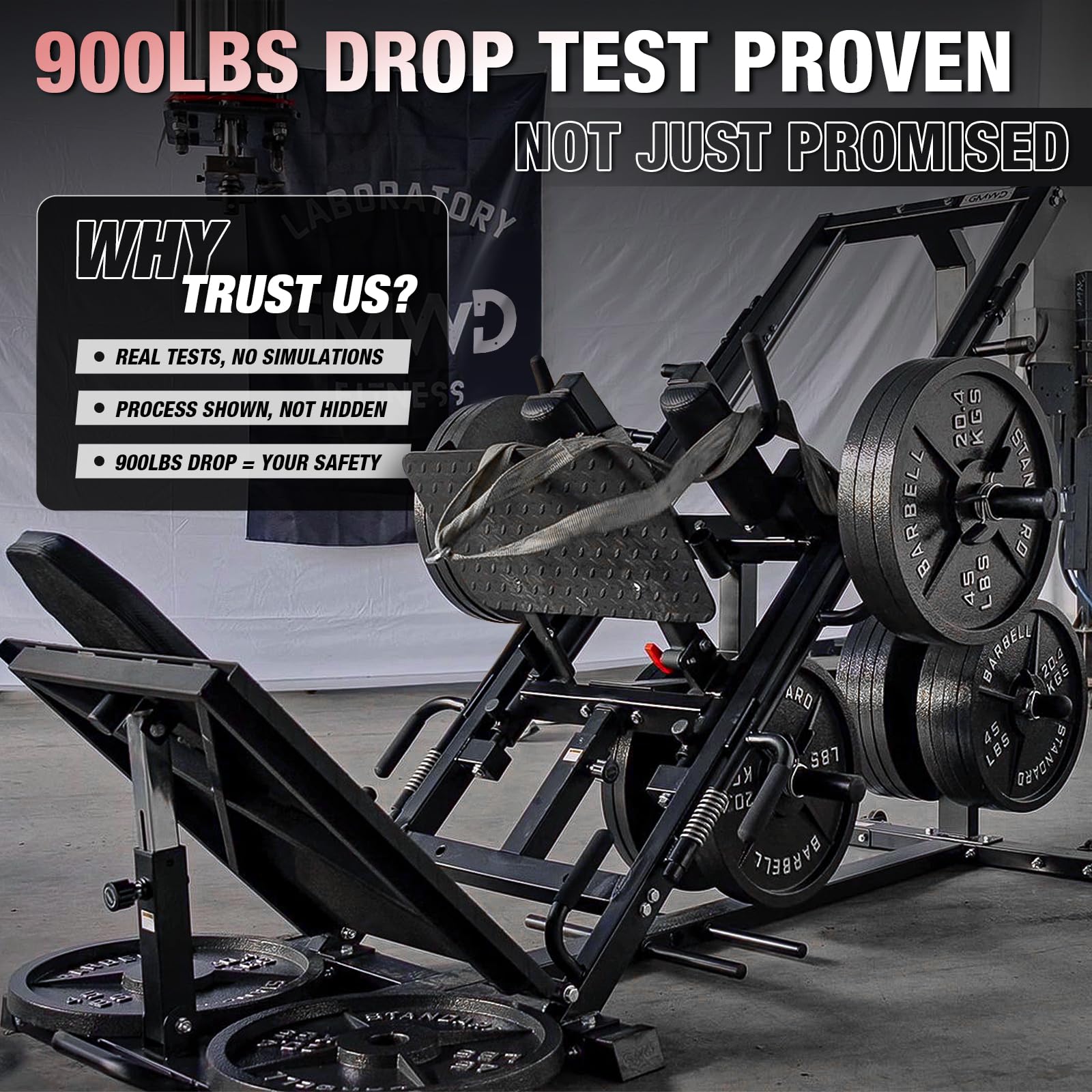 • 【Adjustable Safety Shield】Dual-sided stopper rails with 3 adjustable lockout positions accommodate all user heights for quick, safe workouts. A 5-level safety limiter secures both leg press and hack squat motions. These integrated protections deliver the safety essential for maximizing muscle growth in home gyms.