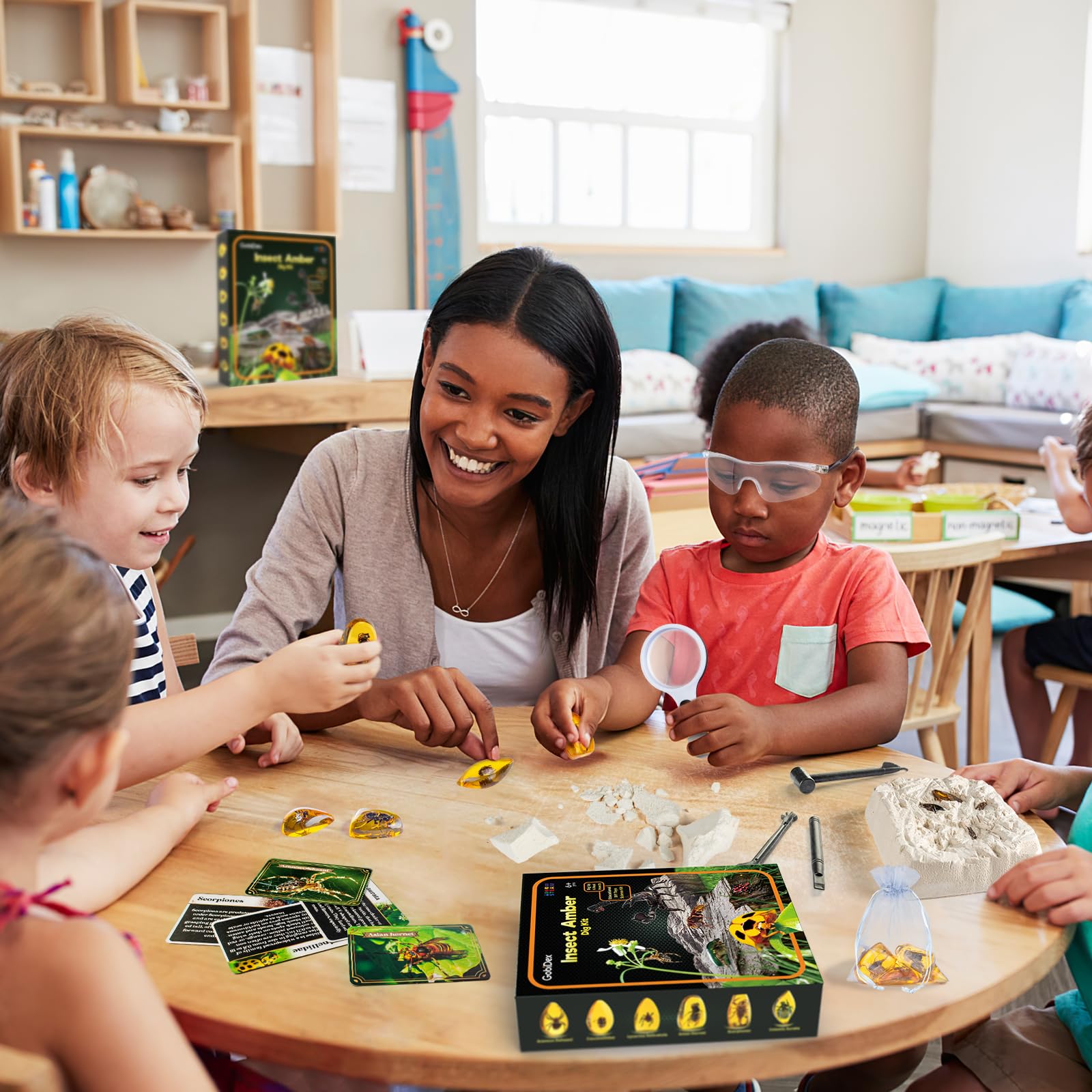 GobiDex Amber Dig Kit-Artificial Insect Resin, Excavate 6 Insects Specimens, STEM Geographic Educational Bugs Toys, Excavation Toys for Fun Bugs Party Favors, Science Kits for Kids Age 6-8 8-12