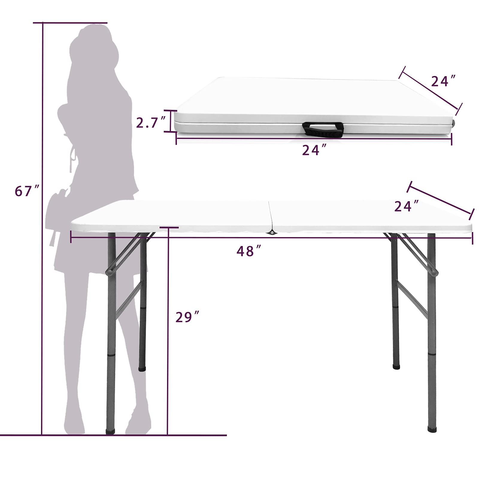 Gocamptoo Folding Table,4ft Indoor Outdoor Heavy Duty Portable Folding Square Plastic Dining Table w/Handle, Lock for Picnic, Party, Camping (4 FT) …