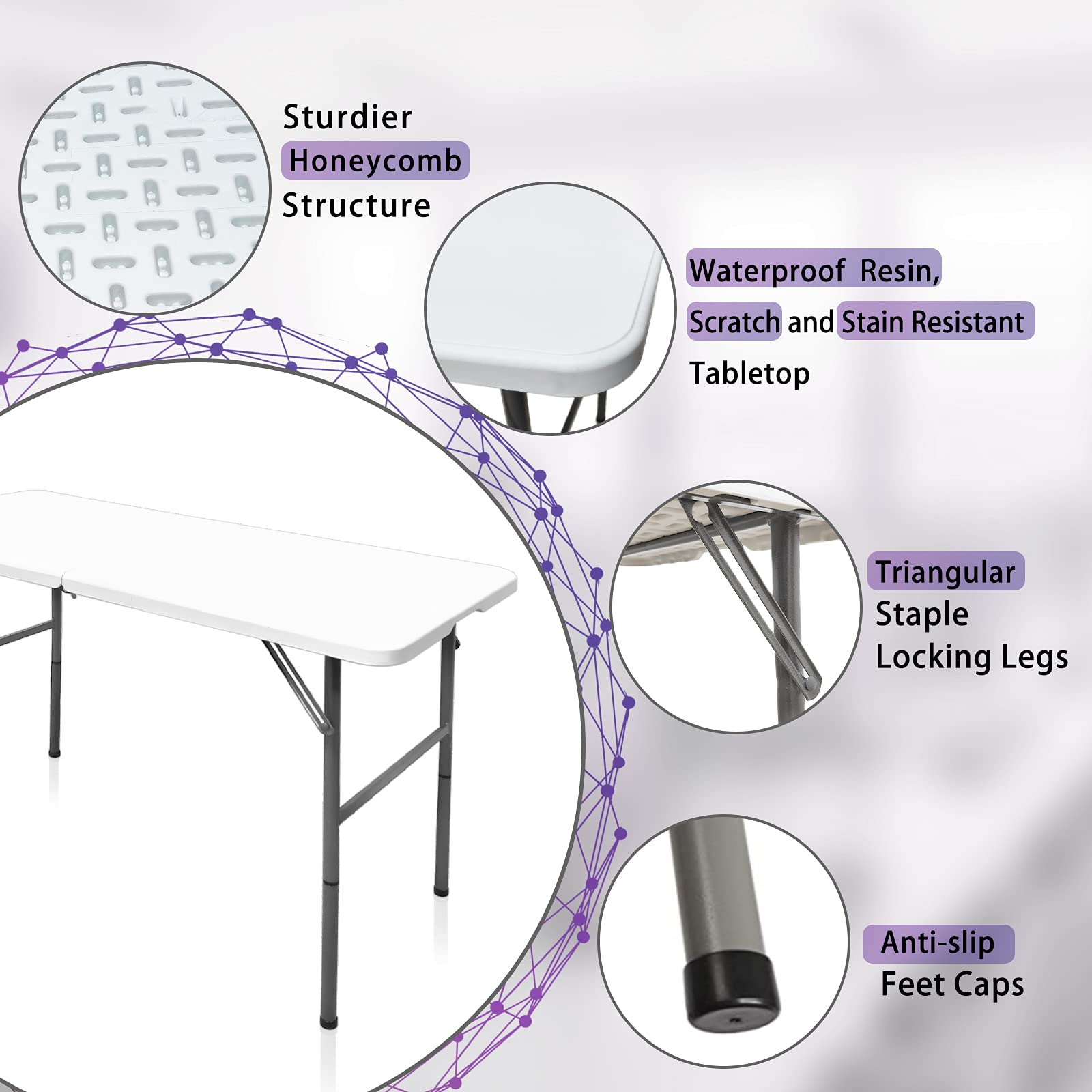 • Simple & Sleek Design:The white minimalist design makes this outdoor folding table blend in with any scene, and the size is suitable for 2-6 people. It offers a perfect space for cards, puzzles, games, crafts, picnic and more.