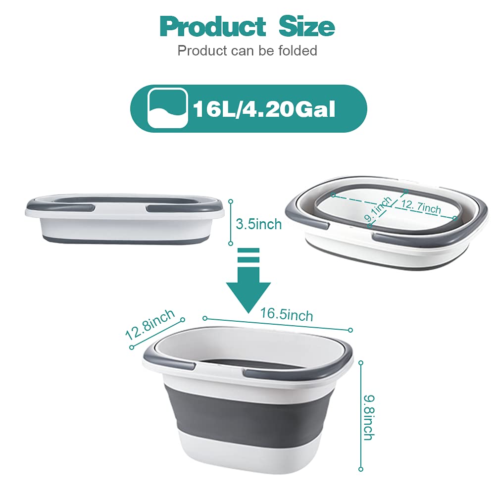 • 【Space-Saving and Foldable】Expanded size:16.5 x 12.8 x 9.8(h) inches.Collapsed:3.5 inches.the exterior bottom dimension is about 12.2 x 8.3 inch. Capacity: 16L / 4.2 gallon