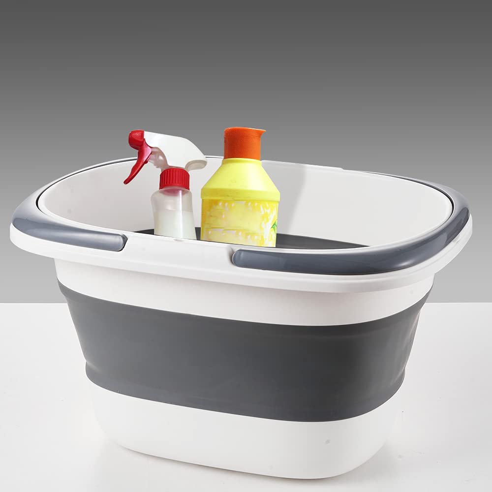Goderewild 2 Pack Large Collapsible Mop Bucket 4.2 Gallon(16L) with Handle for House Cleaning, Space Saving Outdoor Multiuse Foldable Water Pail for Camping, Fishing, RV(2, Grey)