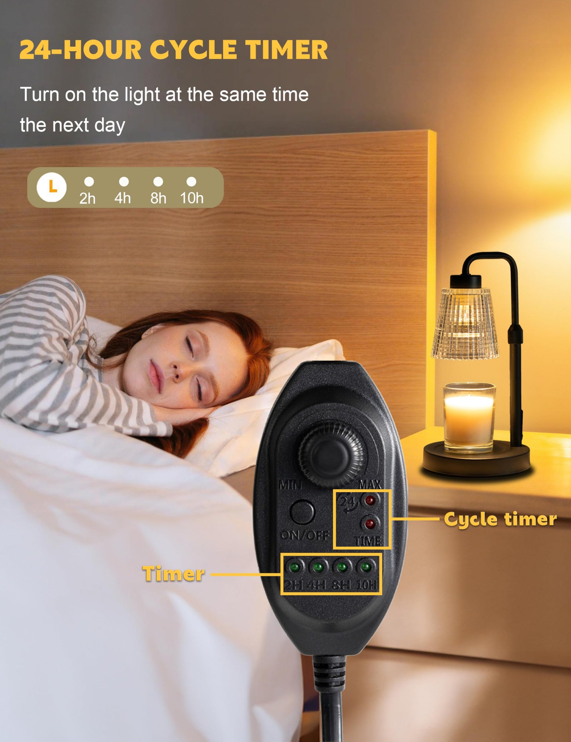 • Fully Dimmable and 12-Hour Timing Function: Enjoy complete control over the ambiance with our dimmable knob, offering unrestricted dimming for personalized melting speeds. Additionally, our Candle+Warmer+Lamp boasts a convenient timer function, ensuring a perfect atmosphere tailored to your preferences, facilitating uninterrupted sweet dreams.