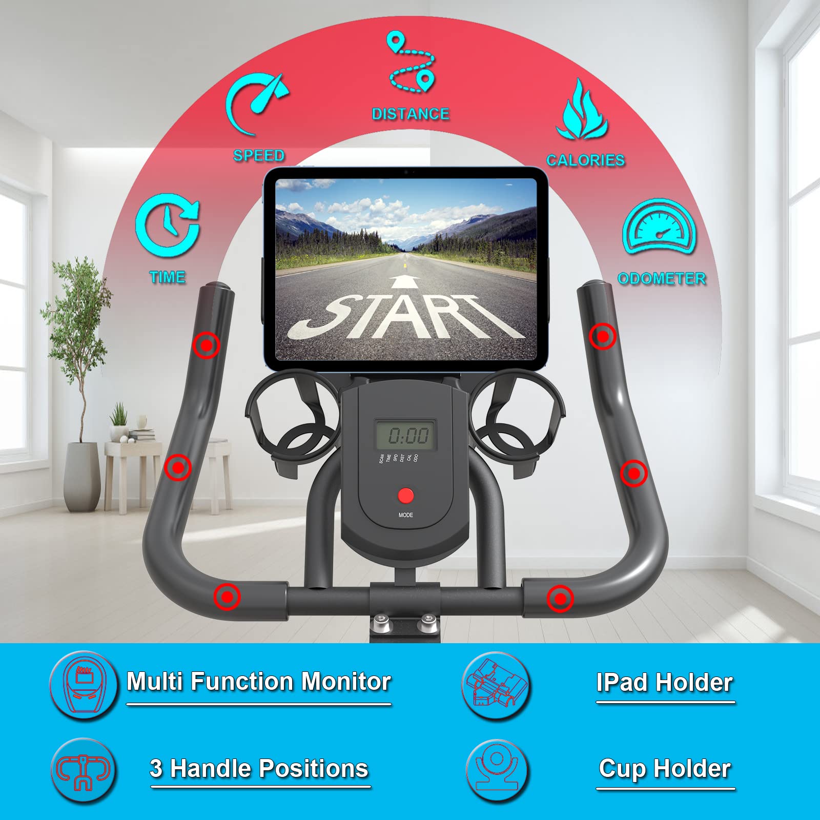 • 🚴【LCD MONITOR & PAD MOUNT】The exercise bike is equipped with a multi-function LCD monitor that displays time, speed, distance, calories burned, mile(NOT km), allowing you to easily get all the training data. And equipped with a phone/PAD bracket. You can watch videos or programs during training, enjoy sports and music, which can make the exercise more easily.