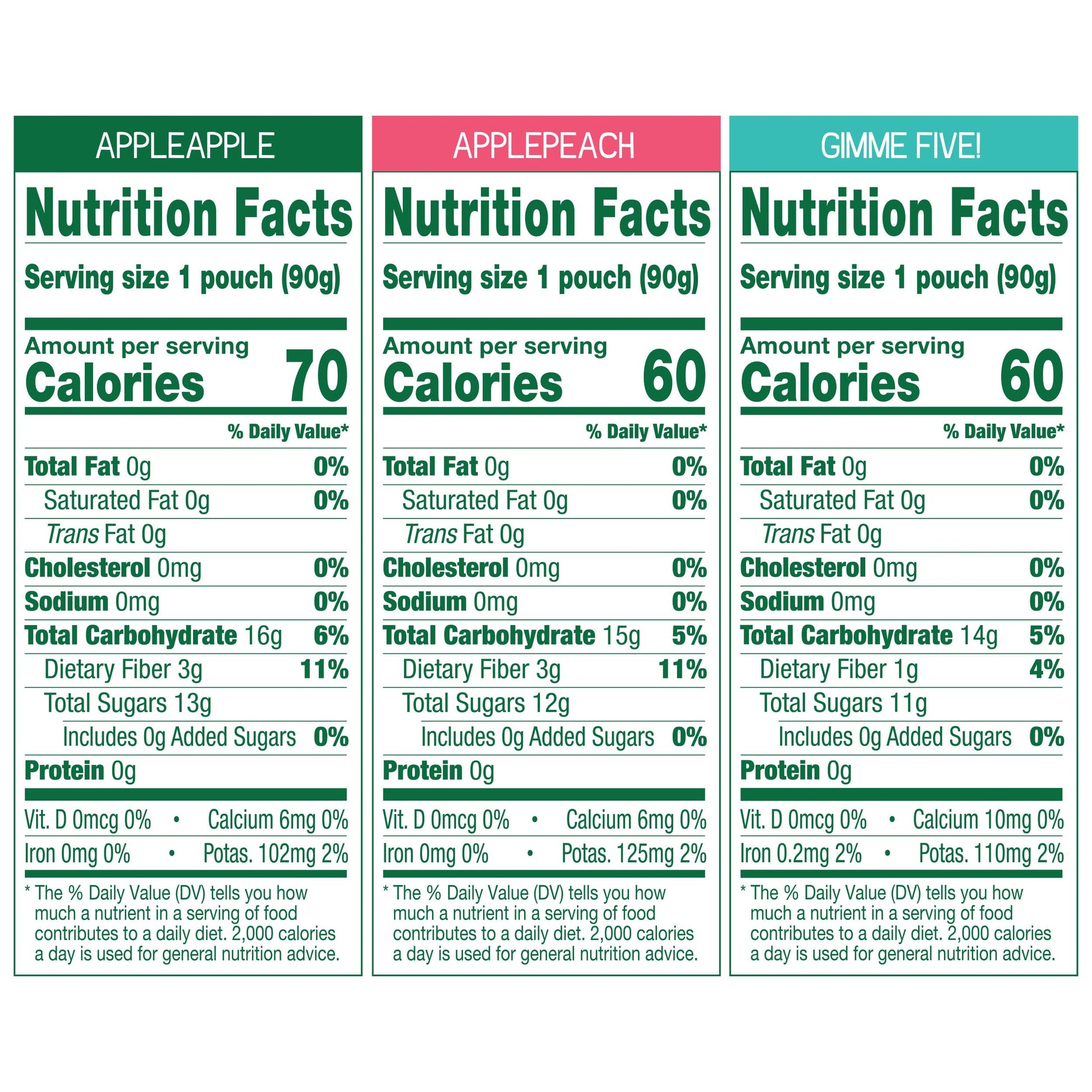Details: Stock up with this variety pack of three yummy GoGo squeeZ Applesauce and Fruit Puree varieties: Apple Apple, Apple Peach and Gimme Five!. GoGo squeeZ Fruit on the Go Apple Apple is our signature applesauce flavor, made with apples and yumminess, for a tasty snack anytime, anywhere. These unsweetened fruit snacks are made from fruit with no high fructose corn syrup (HFCS), no added colors or flavors and no sugar added.* No-fuss, no-mess and convenient kids snack! GoGo squeeZ unsweetened fruit snacks are Non-GMO Project Verified, gluten free, nut free, dairy free and kosher certified. Our products are free of all 9 major allergens, so you, your kids and your whole family can enjoy GoGo squeeZ snacks with confidence and share them without worry. GoGo squeeZ pouches are BPA free and feature easy-open caps and a built-in straw. No spoon, and no mess! From GoGo squeeZ Fruit on the Go, GoGo squeeZ fruit and veggieZ, GoGo BIG squeeZ, GoGo squeeZ Happy tummieZ, and GoGo squeeZ Morning smoothieZ to GoGo squeeZ yogurtZ, there's a variety of snacks to please every child (and adult!) in your family. *Not a low calorie food. See nutrition information for sugars and calorie content.