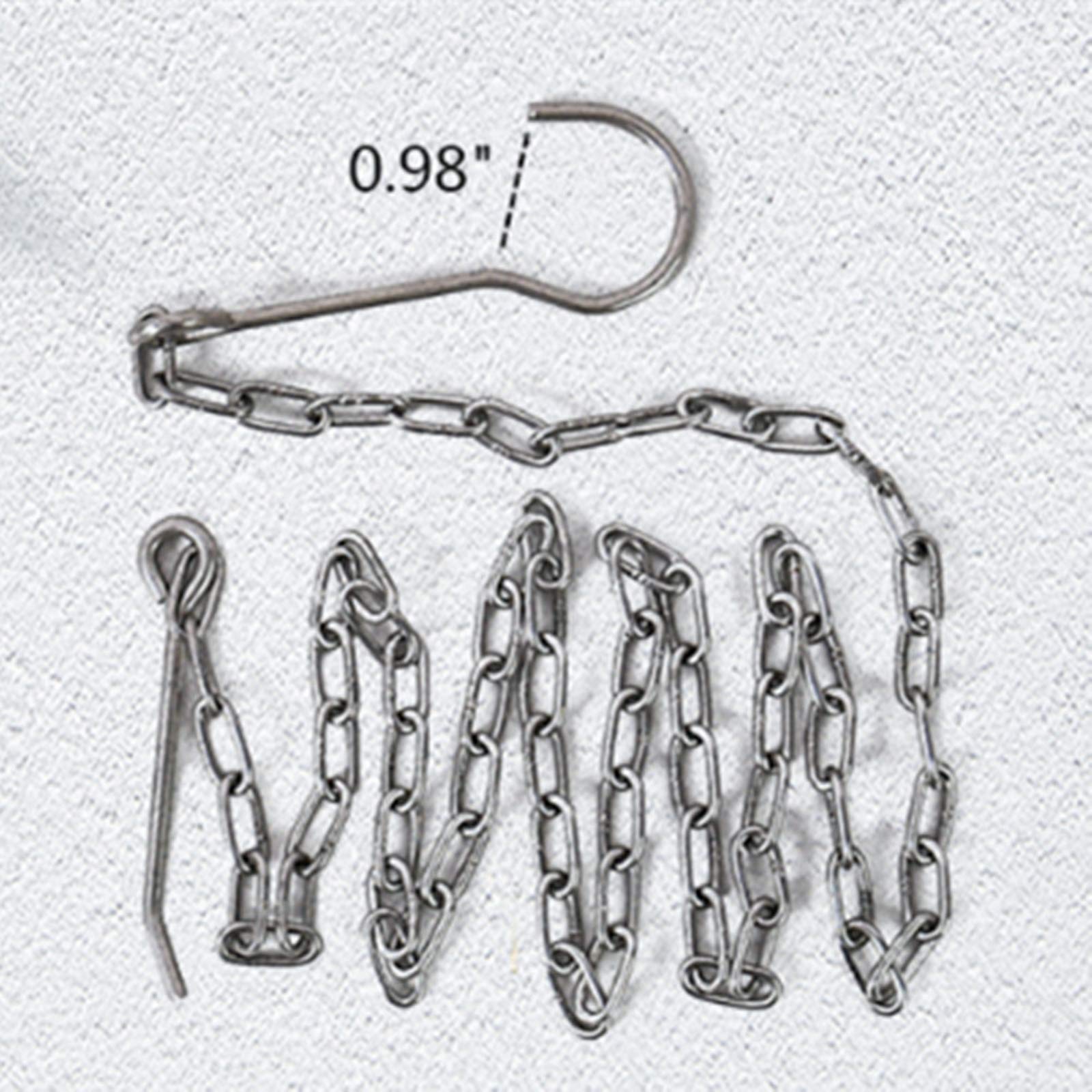 • The new product in 2020, the hook consists of two parts, namely the hook chain and the 3-hole fixing plate. The hook is made of stainless steel and weighs about 148 grams. The length of the chain is 46.45 inches, the diameter of the large hole is 0.78 inches, and the diameter of the small hole is 0.39 inches. The hook bag is made of synthetic cowhide material and copper buttons. The sturdy synthetic cowhide bag can protect the hook and fixed plate well